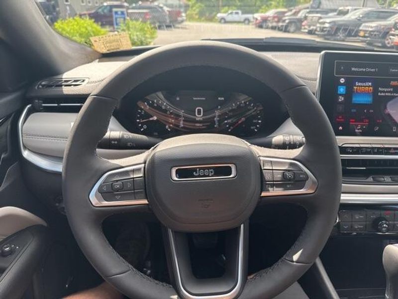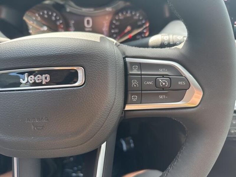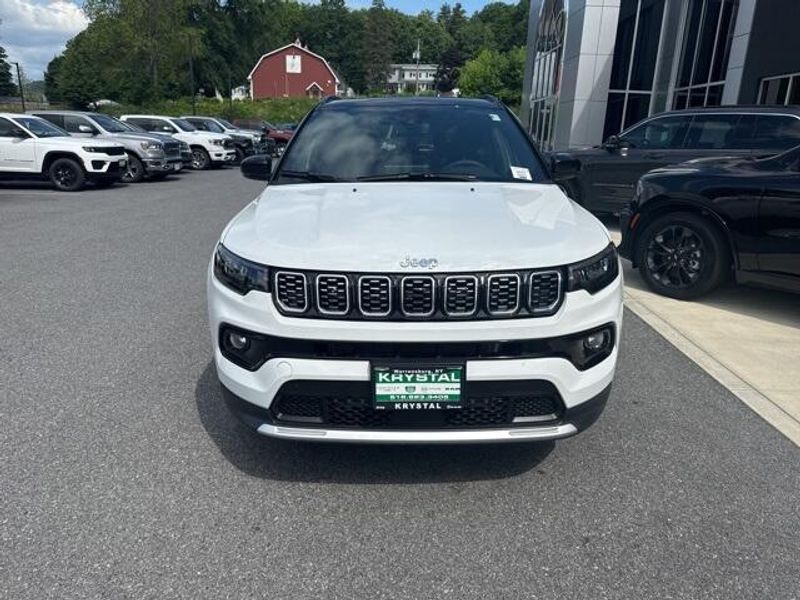 FACTORY REMOTE STARTER, BACK UP CAMERA, BLIND SPOT AND CROSS PATH DETECTION, REAR PARK ASSIST WITH STOP, Jeep Wave, Rear Seat Reminder Alert, Drowsy Driver Detection, Dual Pane Panoramic Sunroof, Jeep Clean Air System, Tire Service Kit, No Spare Tire, Windshield Wiper De-Icer, Pedestrian/Cyclist Emergency Braking, Full Speed Forward Collision Warning Plus, Compass Limited, 4D Sport Utility, 2.0L I4 DOHC, 8-Speed Automatic, 4WD, Bright White Clearcoat, Black w/Leatherette Seats, 3.73 Final Drive Ratio, Delay-off headlights, Front fog lights, Heated front seats, Overhead console, Power Front/Fixed Rear Full Sunroof, Premium Alpine Speaker System, Quick Order Package 29G, Sun and Sound Group, Traction control, Turn signal indicator mirrors, Wheels: 18'' x 7'' Painted Diamond Cut Alum (DISC). 2025 Jeep Compass Limited 2.0L I4 DOHC 4WD Bright White Clearcoat