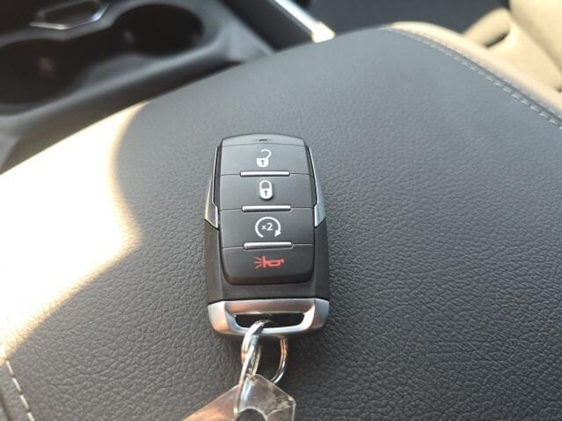FACTORY REMOTE STARTER, BACK UP CAMERA, BLIND SPOT AND CROSS PATH DETECTION, ParkSense Front and Rear Park?Assist with Stop, Front and Rear Rubber Floor Mats by Mopar, 26 Gallon Fuel Tank, Class IV Receiver Hitch, Trailer Sway Damping, Pedestrian Emergency Braking, Full Speed Forward Collision Warning Plus, Active Lane Management System, 4G LTE WIFI Hot Spot, 1500 Big Horn/Lone Star Crew Cab, 4D Crew Cab, 3.6L V6 24V VVT, 8-Speed Automatic, 4WD, Forged Blue Metallic, Black w/Cloth Bench Seat or Deluxe Cloth Bucket Seats, 115V Auxiliary Power Outlet, 2nd Row In Floor Storage Bins, 3.55 Rear Axle Ratio, 400W Inverter, Apple CarPlay/Android Auto, Auto Power-Folding Mirrors, Auto-Dimming Exterior Driver Mirror, Auto-Dimming Rear-View Mirror, Big Horn Badge, Big Horn Level 1 Equipment Group, Black Exterior Mirrors, Black Premium Power Mirrors, Convex Wide-Angle Exterior Mirror Insert, Delay-off headlights, Exterior Mirrors Courtesy Lamps, Exterior Mirrors w/Heating Element, Exterior Mirrors w/Supplemental Signals, Front fog lights, Glove Box Lamp, Heated Front Seats, Heated Steering Wheel, Leather Wrapped Steering Wheel, Overhead console, Power 2-Way Driver Lumbar Adjust, Power Adjust 8-Way Driver Seat, Power Adjustable Pedals, Quick Order Package 23Z Big Horn, Rear Power Sliding Window, Rear Window Defroster, Steering Wheel Mounted Audio Controls, Sun Visors w/Illuminated Vanity Mirrors, Traction control, Universal Garage Door Opener. 2025 Ram 1500 Big Horn/Lone Star Crew Cab 3.6L V6 24V VVT 4WD Forged Blue Metallic