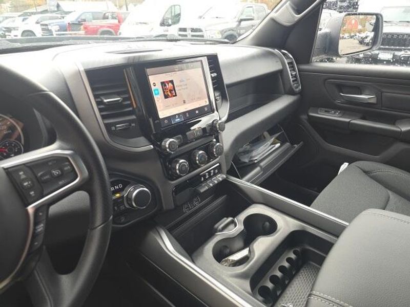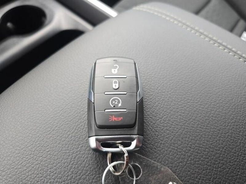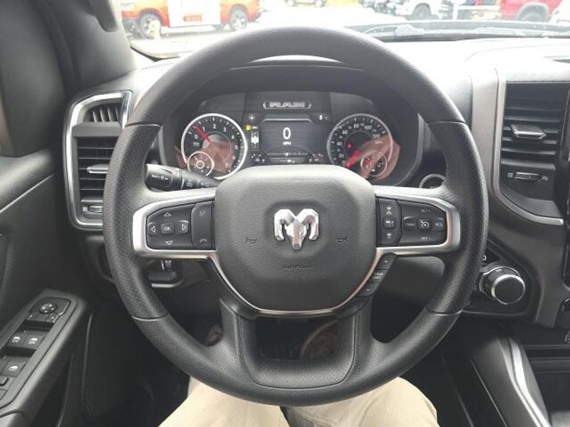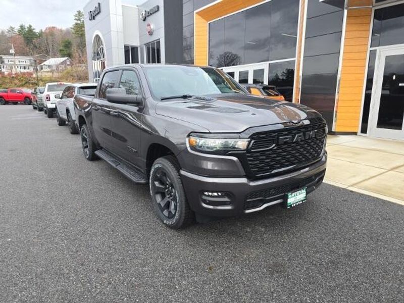 FACTORY REMOTE STARTER, BACK UP CAMERA, BLIND SPOT AND CROSS PATH DETECTION, ParkSense Front and Rear Park?Assist with Stop, Cloth Bucket Seats, 26 Gallon Fuel Tank, Anti-Spin Differential Rear Axle, Tailgate Ajar Warning Lamp, Trailer Sway Damping, Pedestrian Emergency Braking, Full Speed Forward Collision Warning Plus, Active Lane Management System, Class IV Receiver Hitch, 4G LTE WIFI Hot Spot, Ram Clean Air System, 1500 Tradesman Express Crew Cab, 4D Crew Cab, 3.6L V6 24V VVT, 8-Speed Automatic, 4WD, Granite Crystal Metallic Clearcoat, Black w/Cloth Bench Seat or Deluxe Cloth Bucket Seats, 3.55 Rear Axle Ratio, ABS brakes, Apple CarPlay/Android Auto, Delay-off headlights, Overhead console, Traction control. Recent Arrival! 2025 Ram 1500 Tradesman Express Crew Cab 3.6L V6 24V VVT 4WD Granite Crystal Metallic Clearcoat