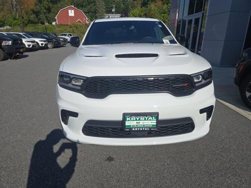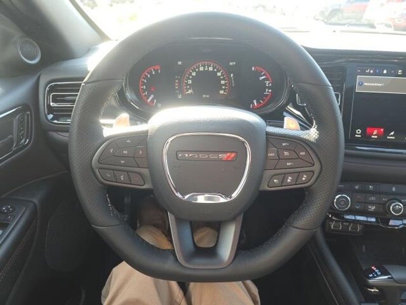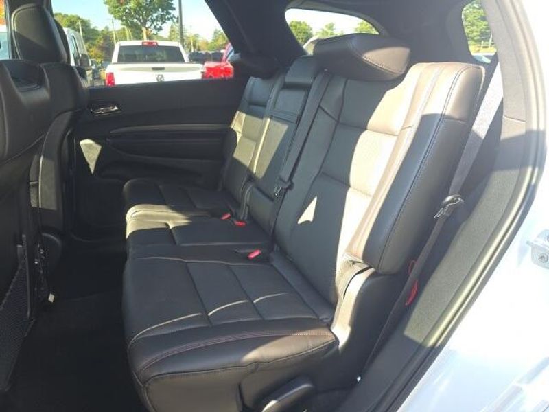 BACK UP CAMERA, BLIND SPOT AND CROSS PATH DETECTION, REAR PARK ASSIST WITH STOP, ParkSense Front and Rear Park?Assist with Stop, Blind Spot Monitoring with Trailer Detection, 24.6 Gallon Fuel Tank, Selectable Steering Modes, Ventilated Front Seats, Rain Sensitive Windshield Wipers, Heated Second Row Seats, Lane Departure Warning Plus, Full Speed Forward Collision Warning Plus, Wireless Charging Pad, Rear Seat Reminder Alert, Durango GT Plus Blacktop Package, 4D Sport Utility, 3.6L V6 24V VVT, 8-Speed Automatic, AWD, White Knuckle Clearcoat, Black w/Leather Trimmed Bucket Seats, 115V Auxiliary Power Outlet, 180 Amp Alternator, 3.45 Rear Axle Ratio, 506 Watt Amplifier, 7 & 4 Pin Wiring Harness, 9 Alpine Amplified Speakers w/Subwoofer, Adaptive Cruise Control w/Stop, Advanced Brake Assist, Apple CarPlay/Android Auto, Auto High Beam Headlamp Control, Auto-Dimming Exterior Driver Mirror, Black Roof Rails, Blacktop Package, Blind Spot w/Trailer Detection, Bright Cargo Area Scuff Pads, Class IV Receiver Hitch, Dual Remote USB Port - Charge Only, Emergency communication system: Dodge Connect, Exterior Mirrors w/Heating Element, Exterior Mirrors w/Memory, Exterior Mirrors w/Supplemental Signals, Full Speed Forward Collision Warning Plus, Gloss Black Badges, Gloss Black Exterior Mirrors, GT Gloss Black Badging, Heated Second Row Seats, Heavy-Duty Engine Cooling, Integrated Roof Rail Crossbars, Knee airbag, Lane Departure Warning Plus, Leather Trimmed Bucket Seats, Leather Wrapped Door Panels, LED Auxiliary Low Beam & Turn Signal, Navigation System, Overhead airbag, Overhead console, ParkSense Front/Rear Park Assist w/Stop, Power 6x9 Multi-Function Foldaway Mirrors, Power 8-Way Driver Memory 8-Way Passenger Seats, Power Driver/Passenger 4-Way Lumbar Adjust, Power Liftgate, Power Sunroof, Power Tilt & Telescopic Steering Column, Quick Order Package 2BH GT Plus, Rear Load Leveling Suspension, Red Accent Stitching, Satin Black Dodge Tail Lamp Badge, Security Alarm, Speed control, Sun Visors w/Illuminated Vanity Mirrors, Traction control, Trailer Brake Control, Ventilated Front Seats, Wheels: 20'' x 8'' Black Noise Aluminum, Wireless Charging Pad. 2026 Dodge Durango GT Plus Blacktop Package 3.6L V6 24V VVT AWD White Knuckle Clearcoat
