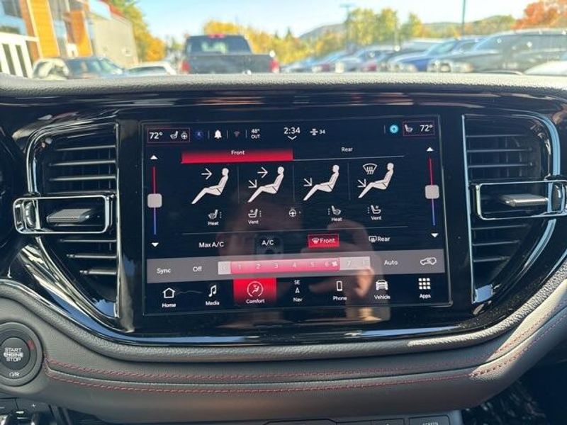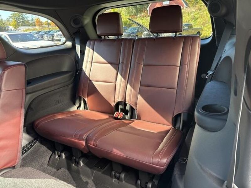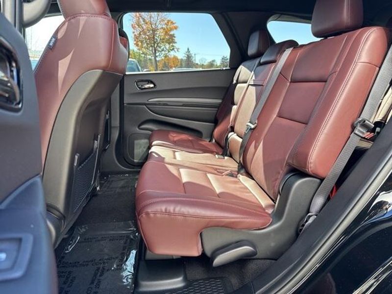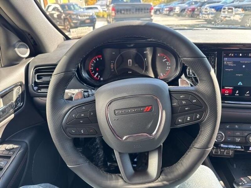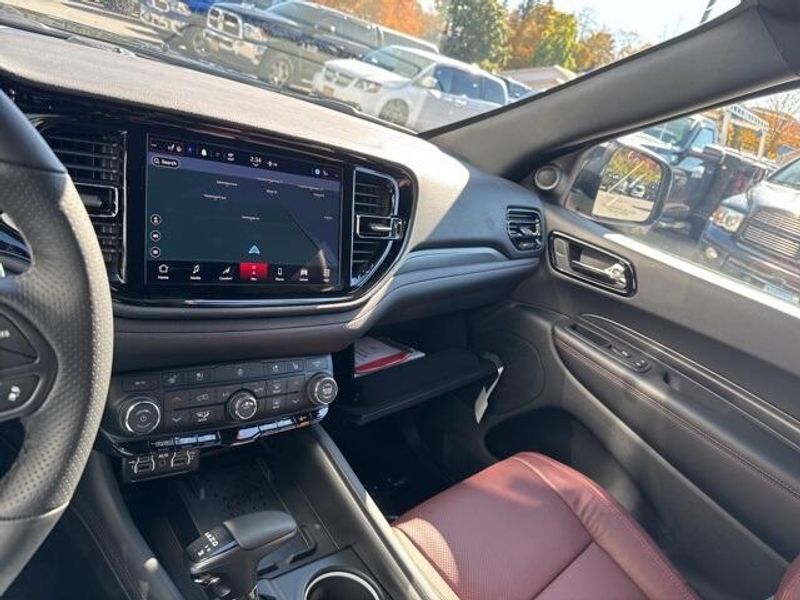 MOONROOF/SUNROOF, FACTORY REMOTE STARTER, BACK UP CAMERA, BLIND SPOT AND CROSS PATH DETECTION, REAR PARK ASSIST WITH STOP, ParkSense Front and Rear Park?Assist with Stop, 24.6 Gallon Fuel Tank, Rear Seat Reminder Alert, Blind Spot Monitoring with Trailer Detection, Ventilated Front Seats, Rain Sensitive Windshield Wipers, Multi-Function Fold Away Mirrors, Heated Second Row Seats, Lane Departure Warning Plus, Full Speed Forward Collision Warning Plus, Wireless Charging Pad, Selectable Steering Modes, Durango GT Plus Blacktop Package, 4D Sport Utility, 3.6L V6 24V VVT, 8-Speed Automatic, AWD, DB Black Crystal Clearcoat, Red/Black/Ebony w/Leather Trimmed Bucket Seats, 115V Auxiliary Power Outlet, 180 Amp Alternator, 3.45 Rear Axle Ratio, 506 Watt Amplifier, 7 & 4 Pin Wiring Harness, 9 Alpine Amplified Speakers w/Subwoofer, ABS brakes, Adaptive Cruise Control w/Stop, Advanced Brake Assist, Apple CarPlay/Android Auto, Auto High Beam Headlamp Control, Auto-Dimming Exterior Driver Mirror, Black Roof Rails, Blacktop Package, Blind Spot w/Trailer Detection, Bright Cargo Area Scuff Pads, Class IV Receiver Hitch, Delay-off headlights, Dual Remote USB Port - Charge Only, Emergency communication system: Dodge Connect, Exterior Mirrors w/Heating Element, Exterior Mirrors w/Memory, Exterior Mirrors w/Supplemental Signals, Full Speed Forward Collision Warning Plus, Gloss Black Badges, Gloss Black Exterior Mirrors, GT Gloss Black Badging, Heated door mirrors, Heated Second Row Seats, Heavy-Duty Engine Cooling, Integrated Roof Rail Crossbars, Knee airbag, Lane Departure Warning Plus, Leather Trimmed Bucket Seats, Leather Wrapped Door Panels, LED Auxiliary Low Beam & Turn Signal, Navigation System, Overhead airbag, Overhead console, ParkSense Front/Rear Park Assist w/Stop, Power 6x9 Multi-Function Foldaway Mirrors, Power 8-Way Driver Memory 8-Way Passenger Seats, Power Driver/Passenger 4-Way Lumbar Adjust, Power Liftgate, Power Sunroof, Power Tilt & Telescopic Steering Column, Quick Order Package 2BH GT Plus, Rear Load Leveling Suspension, Red Accent Stitching, Satin Black Dodge Tail Lamp Badge, Security Alarm, Sun Visors w/Illuminated Vanity Mirrors, Traction control, Trailer Brake Control, Ventilated Front Seats, Wheels: 20'' x 8'' Black Noise Aluminum, Wireless Charging Pad. 2026 Dodge Durango GT Plus Blacktop Package 3.6L V6 24V VVT AWD DB Black Crystal Clearcoat