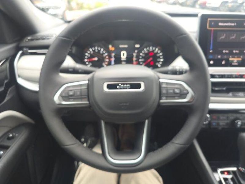 FACTORY REMOTE STARTER, BACK UP CAMERA, BLIND SPOT AND CROSS PATH DETECTION, REAR PARK ASSIST WITH STOP, Rear Seat Reminder Alert, Drowsy Driver Detection, Pedestrian/Cyclist Emergency Braking, Active Lane Management System, Full Speed Forward Collision Warning Plus, Foot Activated Open 'N Go Liftgate, Black Leatherette Seats, Windshield Wiper De-Icer, Tire Service Kit, Jeep Clean Air System, No Spare Tire, Compass Limited, 4D Sport Utility, I4, 8-Speed Automatic with Overdrive, 4WD, Pbj, Black Artificial Leather, 3.73 Final Drive Ratio, Anti-whiplash front head restraints, Apple CarPlay/Android Auto, Delay-off headlights, Front fog lights, Heated door mirrors, Overhead console, Traction control. 2026 Jeep Compass Limited I4 4WD Pbj