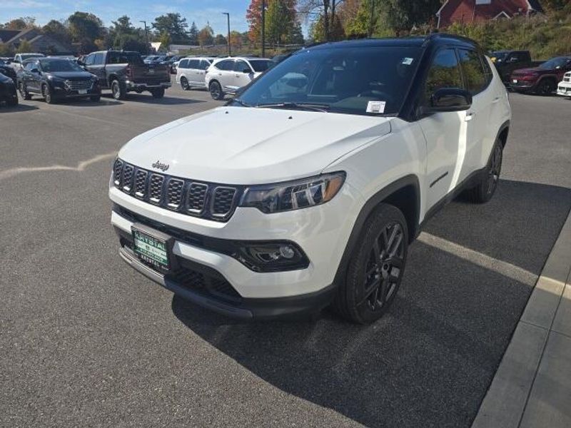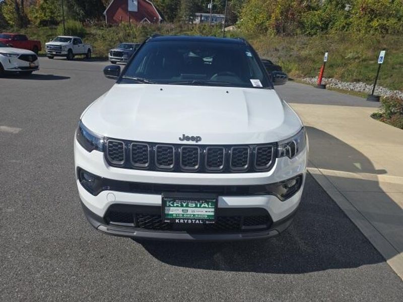 FACTORY REMOTE STARTER, BACK UP CAMERA, BLIND SPOT AND CROSS PATH DETECTION, REAR PARK ASSIST WITH STOP, Limited Altitude Pack, Tire Service Kit, Jeep Clean Air System, Rear Seat Reminder Alert, Drowsy Driver Detection, Active Lane Management System, Full Speed Forward Collision Warning Plus, Foot Activated Open 'N Go Liftgate, Pedestrian/Cyclist Emergency Braking, Windshield Wiper De-Icer, Compass Limited, 4D Sport Utility, I4, 8-Speed Automatic with Overdrive, 4WD, Bright White Clearcoat, Black Artificial Leather, 3.73 Final Drive Ratio, ABS brakes, Anti-whiplash front head restraints, Apple CarPlay/Android Auto, Delay-off headlights, Front fog lights, Heated steering wheel, Leather Shift Knob, Overhead airbag, Overhead console, Traction control, Turn signal indicator mirrors, Wheels: 19'' x 7.5'' Painted Aluminum. 2026 Jeep Compass Limited I4 4WD Bright White Clearcoat