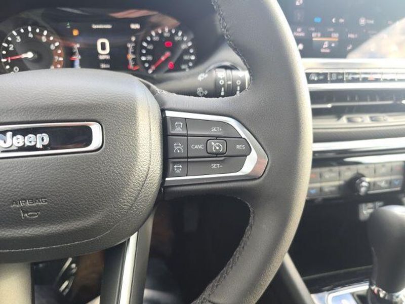 FACTORY REMOTE STARTER, BACK UP CAMERA, BLIND SPOT AND CROSS PATH DETECTION, REAR PARK ASSIST WITH STOP, Rear Seat Reminder Alert, Drowsy Driver Detection, Pedestrian/Cyclist Emergency Braking, Active Lane Management System, Full Speed Forward Collision Warning Plus, Foot Activated Open 'N Go Liftgate, Windshield Wiper De-Icer, Tire Service Kit, Jeep Clean Air System, No Spare Tire, Compass Limited Altitude Pack, 4D Sport Utility, I4, 8-Speed Automatic with Overdrive, 4WD, Pr6, Black Artificial Leather, 3.73 Final Drive Ratio, Anti-whiplash front head restraints, Apple CarPlay/Android Auto, Delay-off headlights, Front fog lights, Heated door mirrors, Overhead airbag, Overhead console, Turn signal indicator mirrors. 2026 Jeep Compass Limited Altitude Pack I4 4WD Pr6