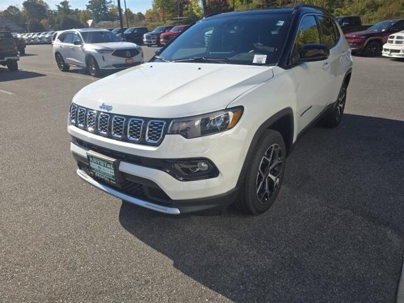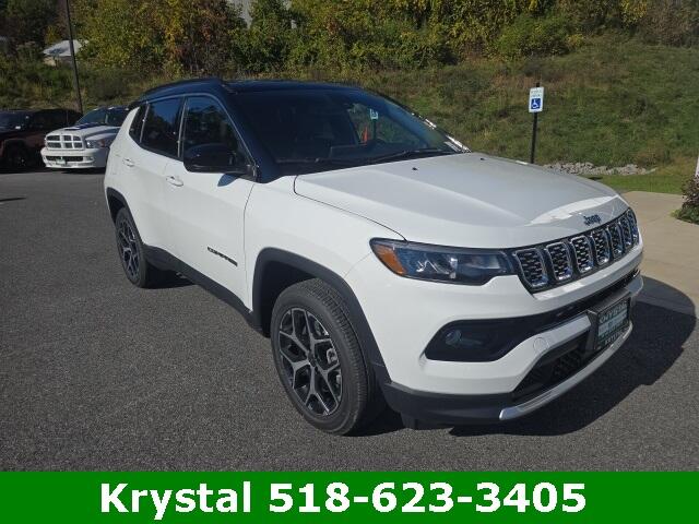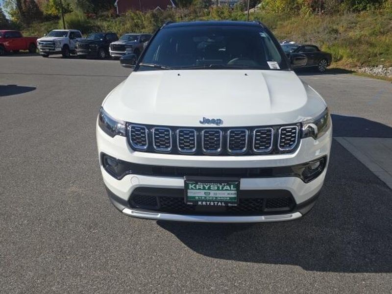 FACTORY REMOTE STARTER, BACK UP CAMERA, BLIND SPOT AND CROSS PATH DETECTION, REAR PARK ASSIST WITH STOP, Rear Seat Reminder Alert, Drowsy Driver Detection, Jeep Clean Air System, Tire Service Kit, Full Speed Forward Collision Warning Plus, Active Lane Management System, Pedestrian/Cyclist Emergency Braking, Windshield Wiper De-Icer, Foot Activated Open 'N Go Liftgate, Compass Limited, 4D Sport Utility, I4, 8-Speed Automatic with Overdrive, 4WD, Bright White Clearcoat, Black Artificial Leather, 3.73 Final Drive Ratio, Anti-whiplash front head restraints, Apple CarPlay/Android Auto, Delay-off headlights, Front fog lights, Heated steering wheel, Overhead console, Traction control, Turn signal indicator mirrors. 2026 Jeep Compass Limited I4 4WD Bright White Clearcoat