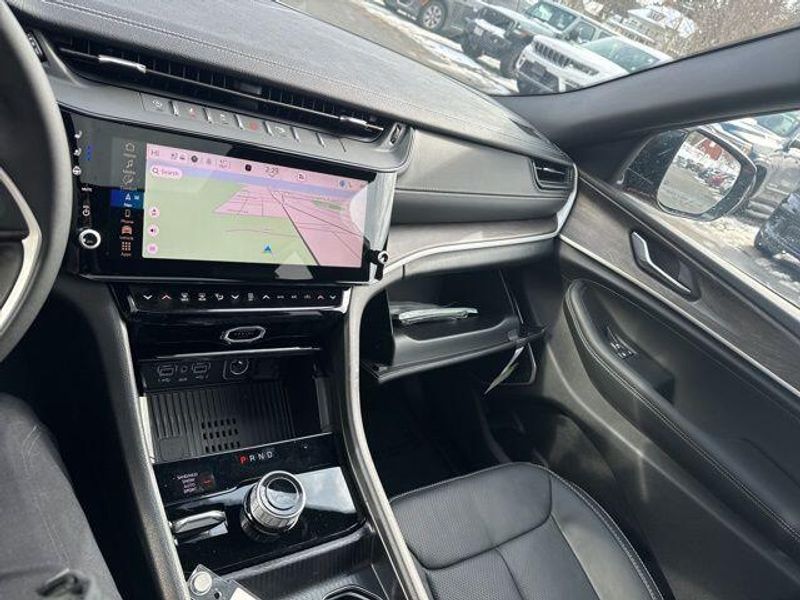 Step inside the Grand Cherokee L Limited and be captivated by the luxurious Nappa leather-trimmed interior, complete with heated and ventilated front seats, a heated steering wheel, and a stunning dual-pane panoramic sunroof that floods the cabin with natural light. The advanced Uconnect 5 infotainment system, with its 12.3-inch display, provides seamless connectivity and intuitive control over your music, navigation, and vehicle settings.