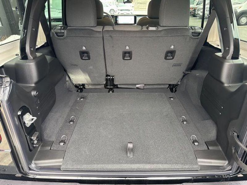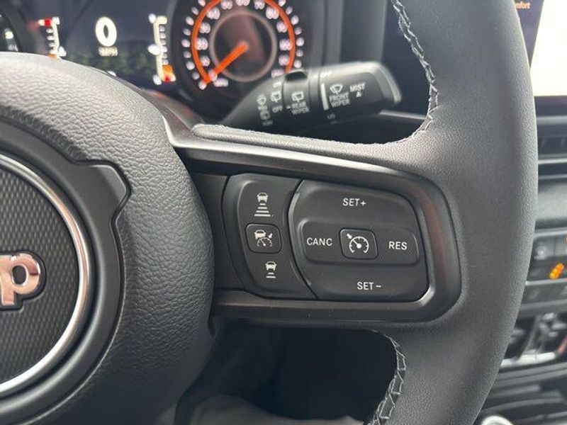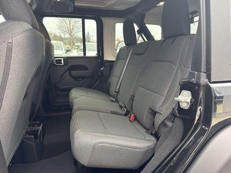 The Wrangler Sport S also showcases a sleek, bold exterior in Black, complemented by premium touches like the Black 3-Piece Hard Top and LED Taillamps. Step inside and discover the refined interior, featuring Cloth Low-Back Bucket Seats, a Heated Steering Wheel, and a stunning 12.3'' Touchscreen Display with Apple CarPlay and Android Auto integration.