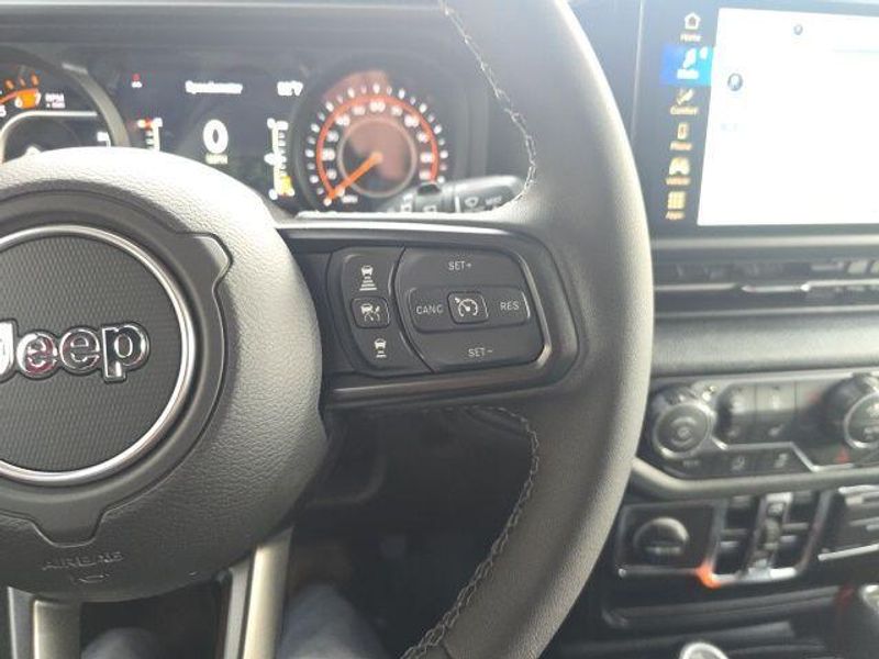 The interior of the Wrangler Sport S is designed for both comfort and convenience, with features such as a 12.3'' touchscreen display, Apple CarPlay, Android Auto, and a premium audio system. The split-folding rear seat provides ample cargo space, making it easy to accommodate all your gear.
