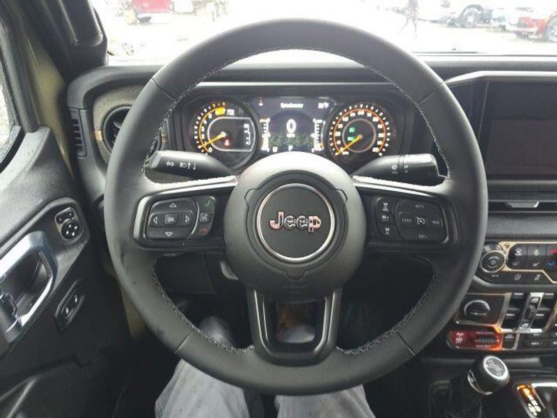 Stepping inside, you'll be greeted by a stunning 12.3-inch touchscreen display, seamlessly integrating Apple CarPlay, Android Auto, and a wealth of connectivity features. The Willys '41 Retro Edition package adds a touch of vintage flair, with stylish accents that pay homage to the iconic Jeep heritage.