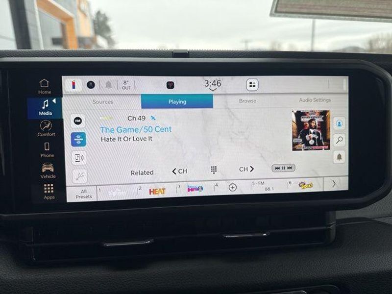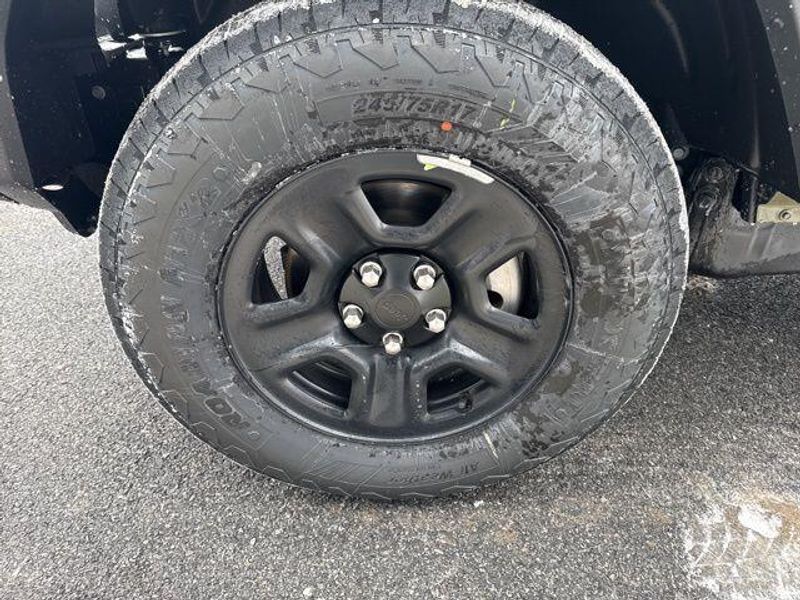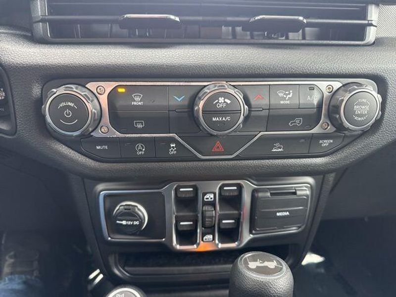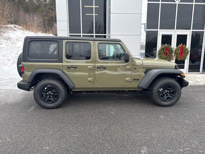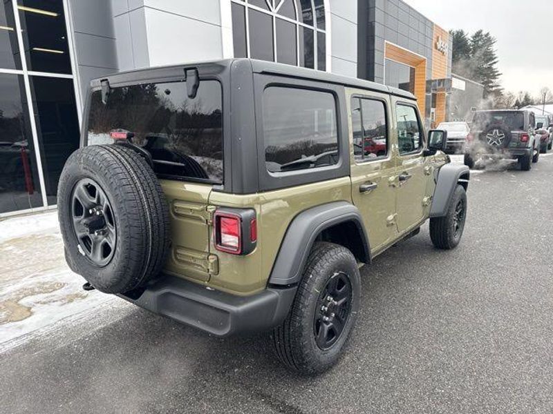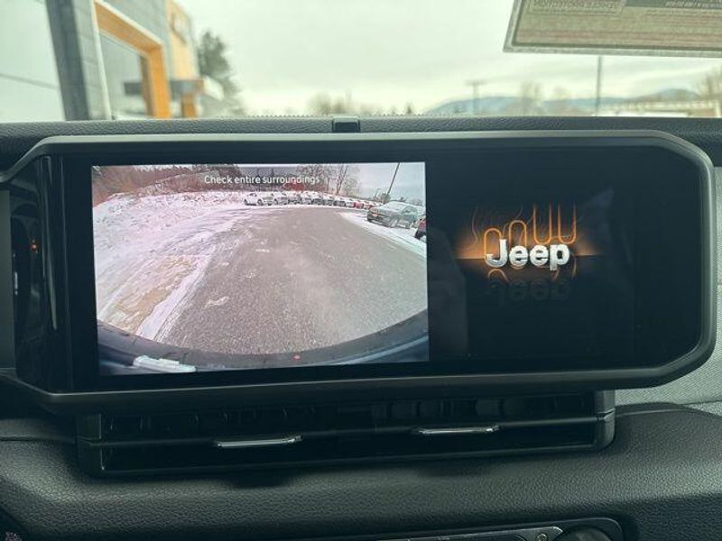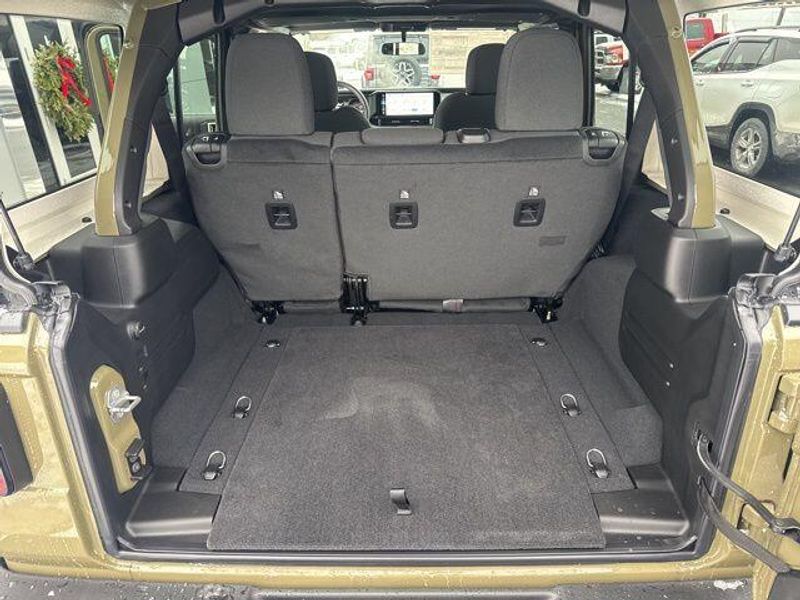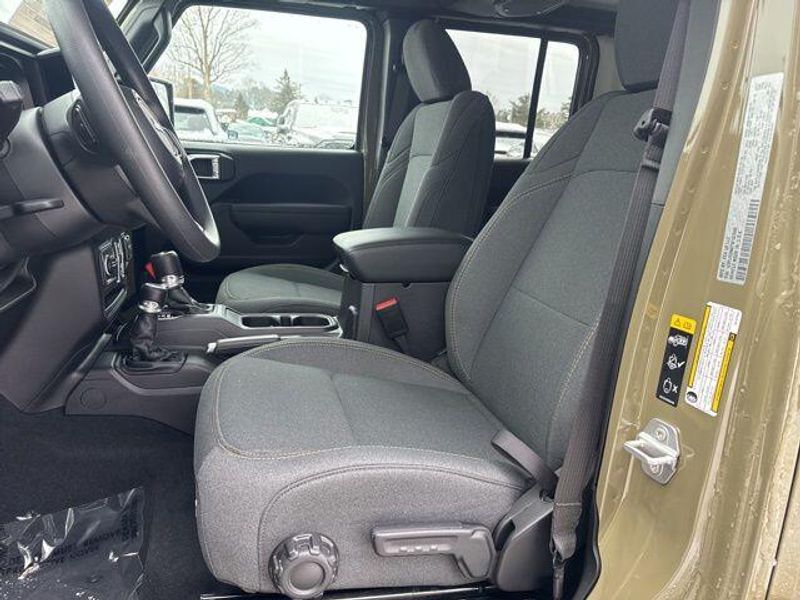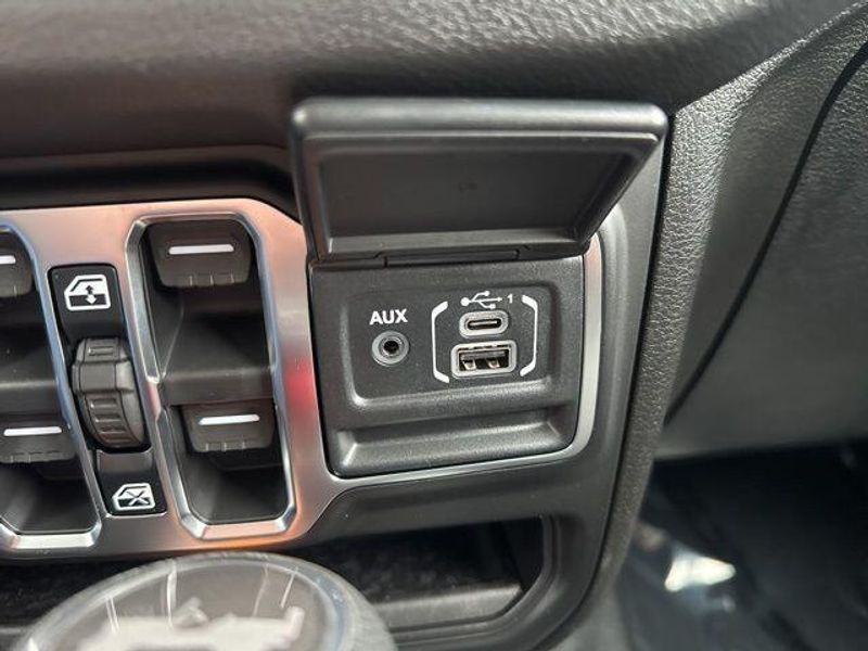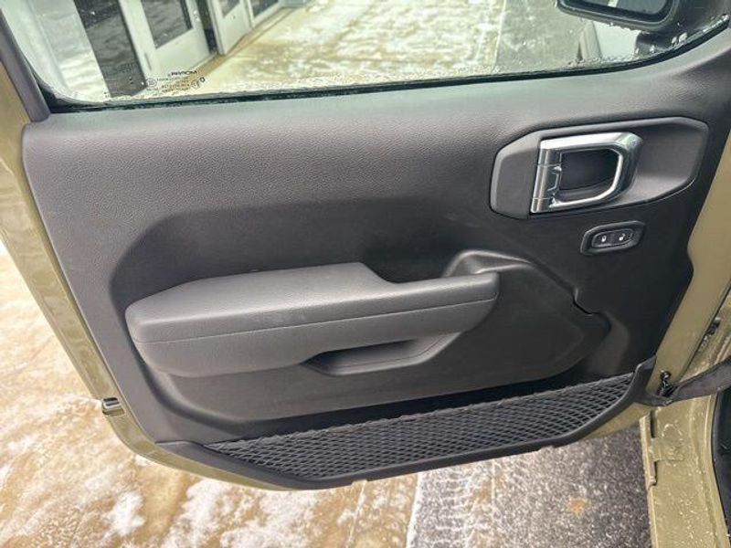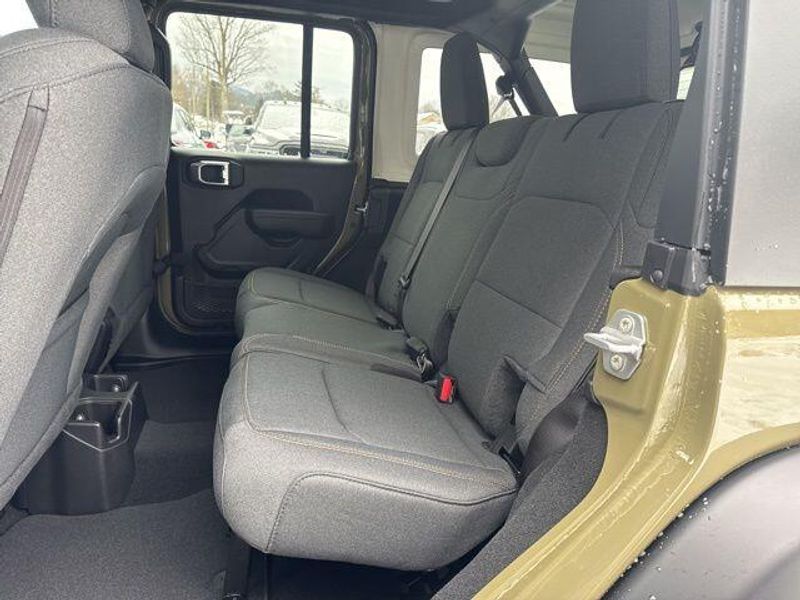 The interior of this Wrangler Sport is packed with premium features, including a 12.3-inch touchscreen display with Uconnect 5, Apple CarPlay, and Android Auto integration. The cloth low-back bucket seats provide all-day comfort, while the split-folding rear seat offers versatility to accommodate your cargo needs.