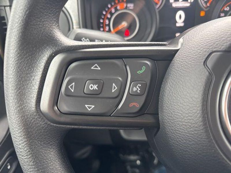 Under the hood, you'll find a powerful 2.0L I4 DOHC engine mated to an 8-speed automatic transmission, delivering exceptional 4WD performance. With an EPA-estimated 20 city/22 highway MPG, this Wrangler Sport offers impressive fuel efficiency without compromising its legendary off-road capabilities.
