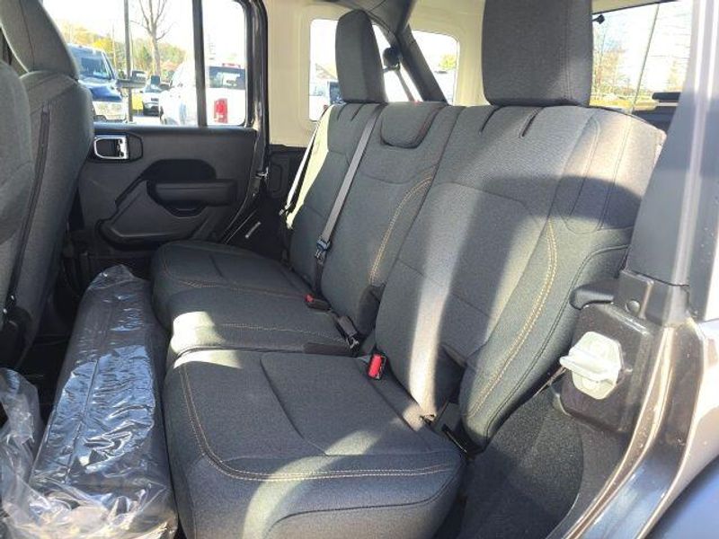 Inside, you'll find a well-appointed cabin with premium cloth low-back bucket seats, a front center armrest with storage, and a convenient split-folding rear seat. The ParkView Rear Back-Up Camera and Steering Wheel Mounted Audio Controls add to the Wrangler's user-friendly features, making it a joy to drive both on and off the beaten path.