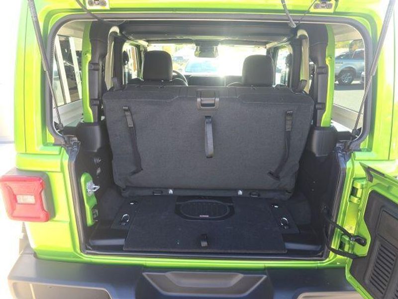 This Wrangler's stunning Green exterior complements its rugged and adventurous spirit, making it a true head-turner on and off the road. With an impressive fuel efficiency of 20 city/23 highway MPG, you can explore the great outdoors without sacrificing your wallet.