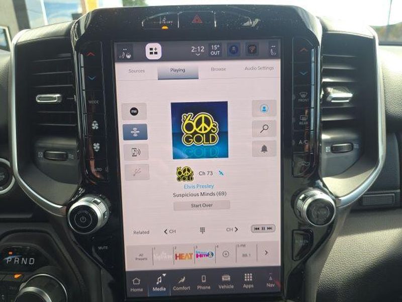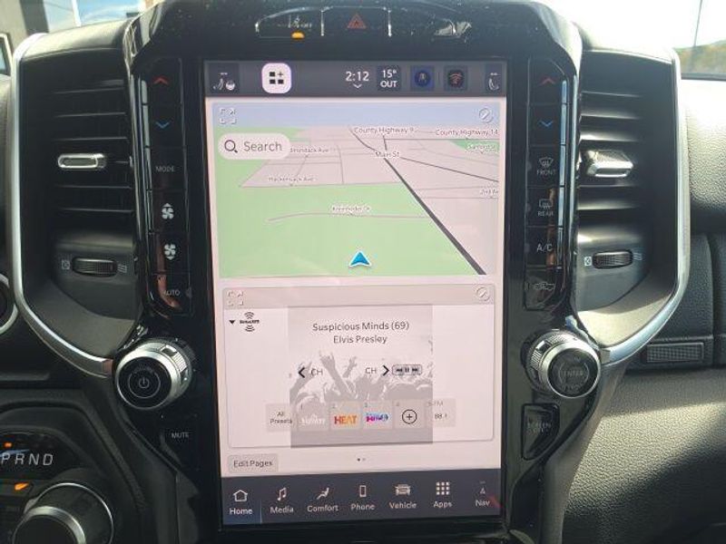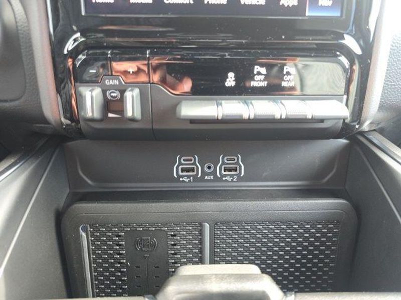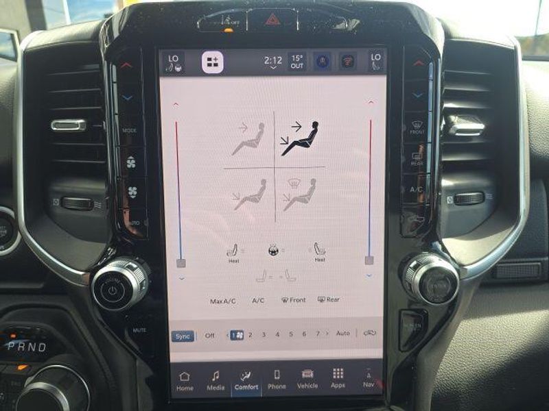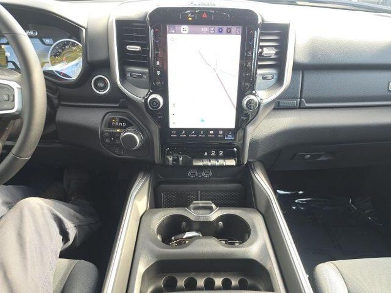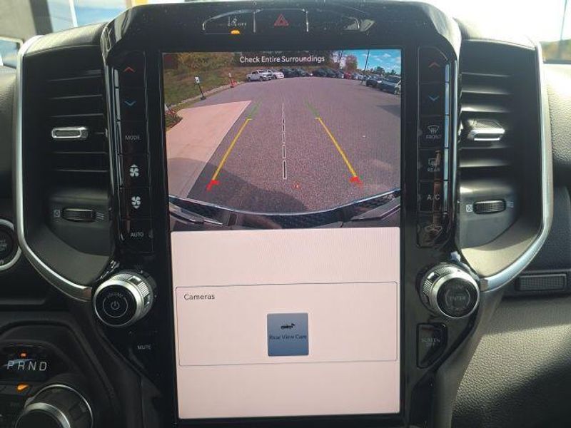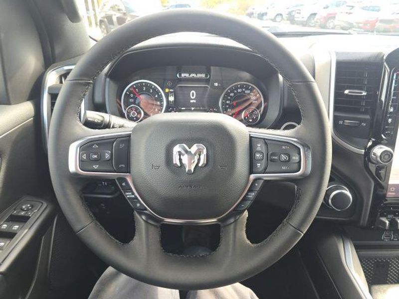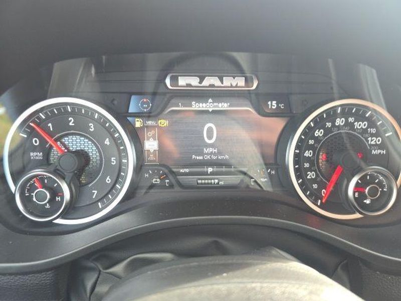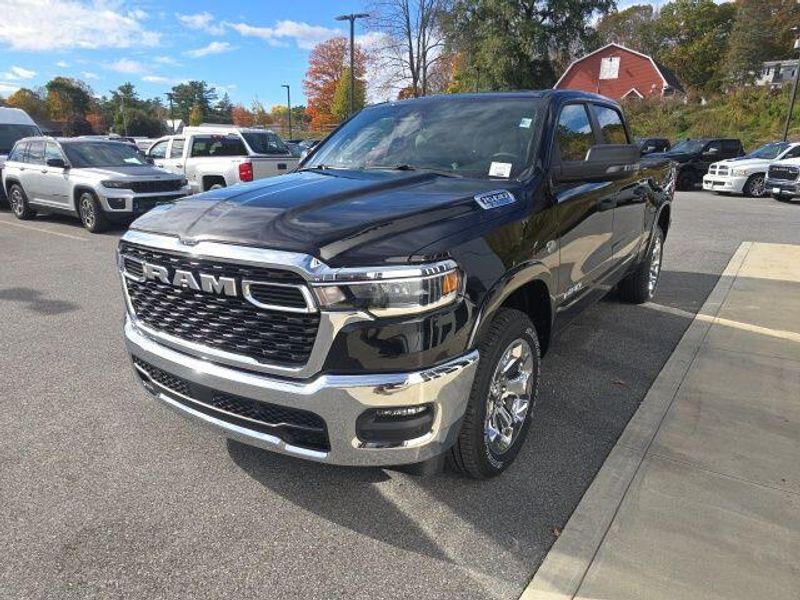 FACTORY REMOTE STARTER, BACK UP CAMERA, BLIND SPOT AND CROSS PATH DETECTION, ParkSense Front and Rear Park?Assist with Stop, 33 Gallon Fuel Tank, Trailer Brake Controller, Front and Rear Rubber Floor Mats by Mopar, Class IV Receiver Hitch, My FlexCare Service, Pedestrian Emergency Braking, Full Speed Forward Collision Warning Plus, Active Lane Management System, 1500 Big Horn/Lone Star Crew Cab, 4D Crew Cab, HEMI 5.7L V8 Multi Displacement VVT eTorque, 8-Speed Automatic, 4WD, Diamond Black Crystal Pearlcoat, Diesel Gray/Black w/Deluxe Cloth Bucket Seats, 115V Auxiliary Power Outlet, 115V Auxiliary Rear Power Outlet, 12'' Touchscreen Display, 2nd Row In Floor Storage Bins, 3 Rear Seat Head Restraints, 3.92 Rear Axle Ratio, 4 Way Front Headrests, 400W Inverter, 4G LTE Wi-Fi Hot Spot, 9 Amplified Speakers w/Subwoofer, Air Conditioning ATC w/Dual Zone Control, Apple CarPlay, Auto High-beam Headlights, Auto Power-Folding Mirrors, Auto-Dimming Exterior Driver Mirror, Auto-Dimming Rear-View Mirror, Big Horn Level 2 Equipment Group, Black Exterior Mirrors, Black Premium Power Mirrors, Body Color Fender Flares, Bucket Seats, Center Console Parts Module, Cluster 7.0'' TFT Color Display, Configurable Drive Mode, Connected Travel & Traffic Services, Connectivity - US/Canada, Convex Wide-Angle Exterior Mirror Insert, Delay-off headlights, Deluxe Cloth Bucket Seats, Disassociated Touchscreen Display, Exterior Mirrors Courtesy Lamps, Exterior Mirrors w/Heating Element, Exterior Mirrors w/Supplemental Signals, Front fog lights, Front Seat Back Map Pockets, Full Length Floor Console, Global Telematics Box Module (TBM), Glove Box Lamp, Google Android Auto, GPS Antenna Input, GPS Navigation, HD Radio, Heated Front Seats, Heated Steering Wheel, Integrated Center Stack Radio, Integrated Voice Command w/Bluetooth, Leather Wrapped Steering Wheel, LED Dome Lamp w/On/Off Switch, LED Footwell Lighting, Manual Adjust 4-Way Front Passenger Seat, Media Hub w/2 Charge Only USBs, Overhead LED Lamps, Power 2-Way Driver Lumbar Adjust, Power Adjust 8-Way Driver Seat, Power Adjustable Pedals, Premium Overhead Console, Quick Order Package 27Z Big Horn, Radio: Uconnect 5 Nav w/12.0'' Display, Rear 60/40 Folding Seat, Rear Center Armrest, Rear Power Sliding Window, Rear Window Defroster, Remote Tailgate Release, Secondary Active Grille Shutters, Security Alarm, SiriusXM Radio Service, SiriusXM w/360L, Steering Wheel Mounted Audio Controls, Sun Visors w/Illuminated Vanity Mirrors, Traction control, Universal Garage Door Opener, USB Host Flip, Wheels: 20'' x 9'' Aluminum Chrome Clad (WRK), Wireless Charging Pad. 2026 Ram 1500 Big Horn/Lone Star Crew Cab HEMI 5.7L V8 Multi Displacement VVT eTorque 4WD Diamond Black Crystal Pearlcoat