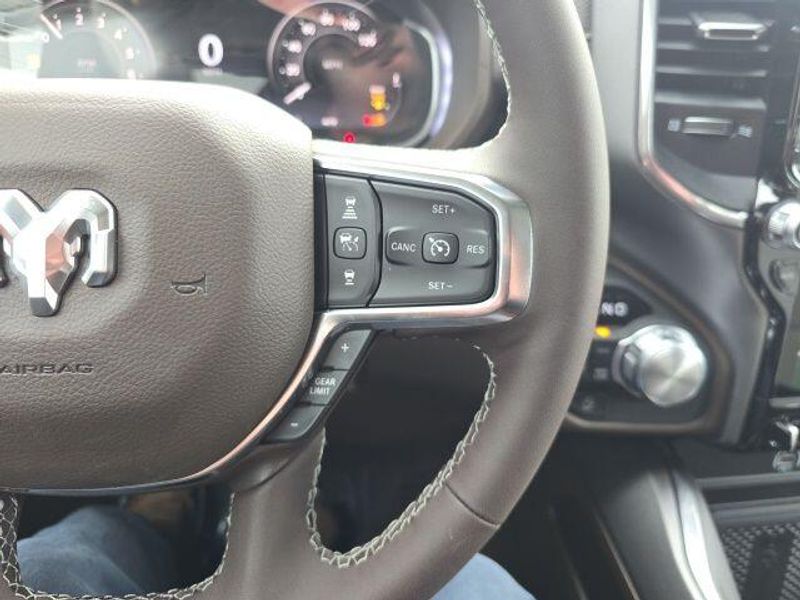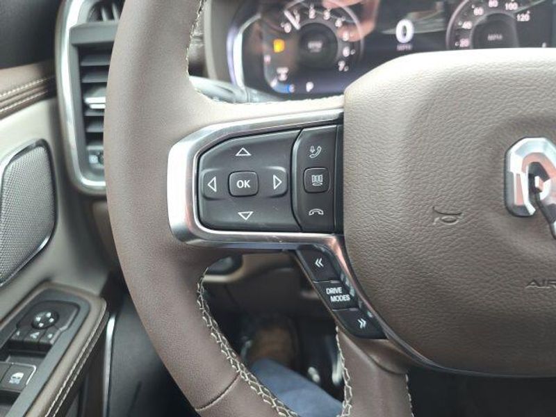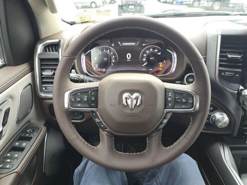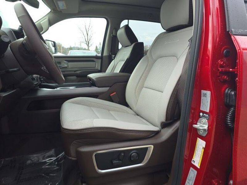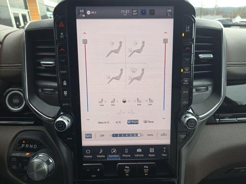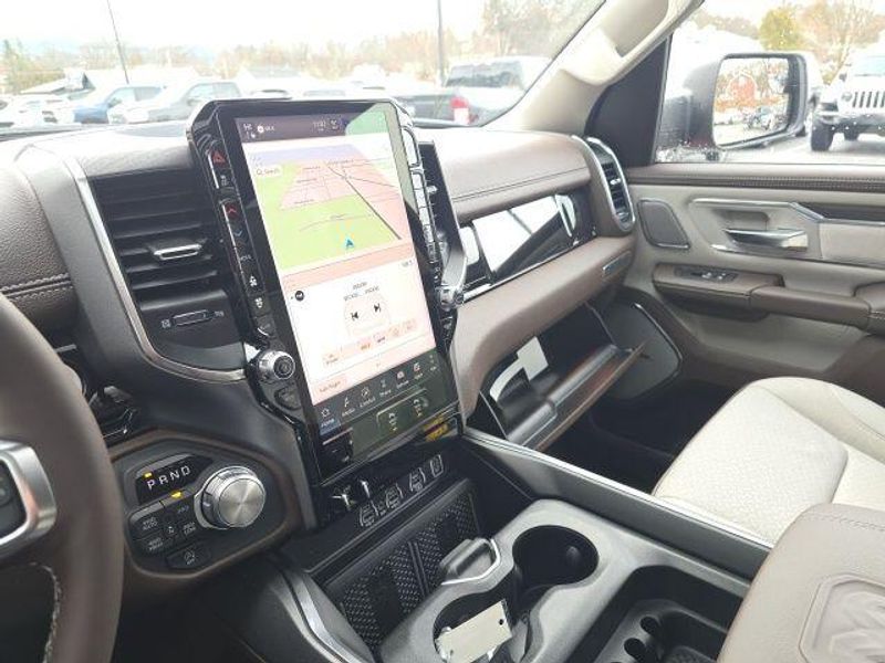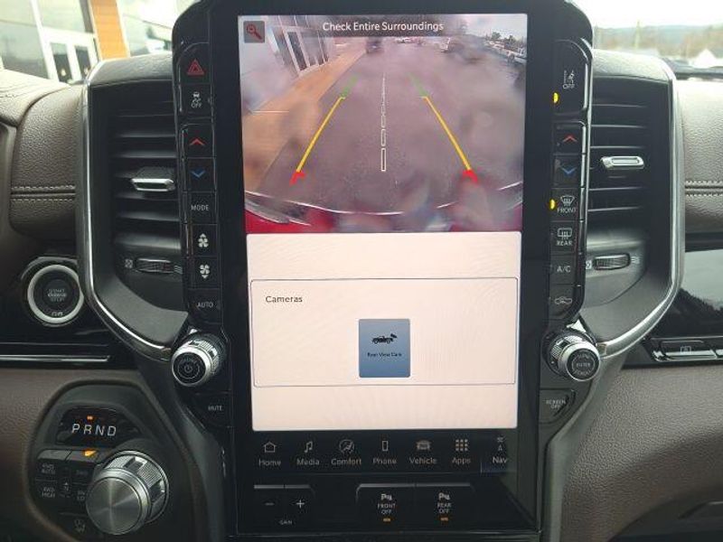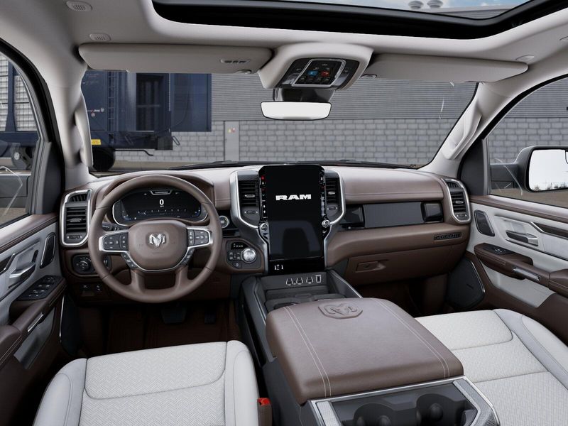 The interior of the 2026 Ram 1500 Laramie Crew Cab is a true sanctuary, offering unparalleled comfort and convenience. Sink into the plush, leather-trimmed bucket seats and enjoy the warmth of the heated front and rear seats, as well as the ventilated front seats for optimal climate control. The 14.4'' touchscreen display and 12'' TFT color cluster provide you with seamless connectivity and intuitive controls, while the premium harman/kardon sound system delivers a concert-hall experience.