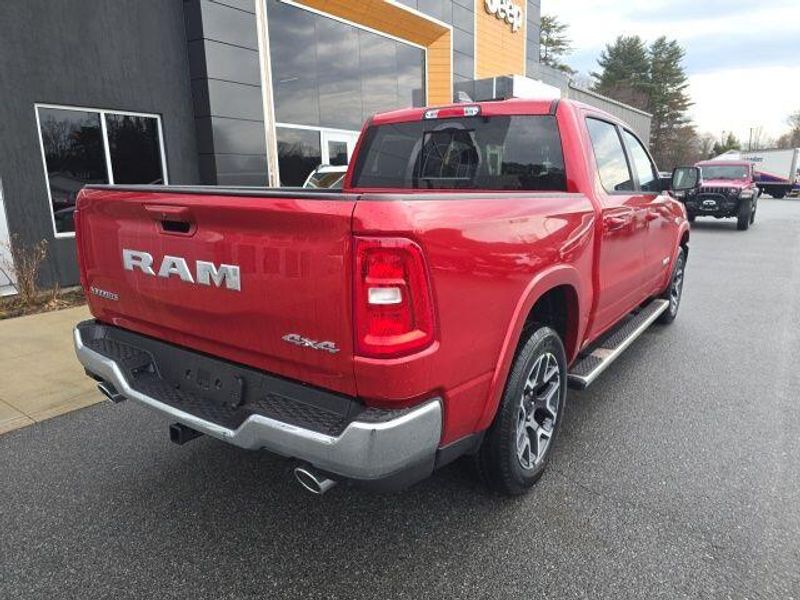 Designed with both form and function in mind, the 2026 Ram 1500 Laramie Crew Cab combines rugged capability with refined elegance. The bold, distinctive exterior in the stunning Molten Red Pearlcoat color commands attention, while the chrome exterior accents and wheel-to-wheel side steps add a touch of sophistication.