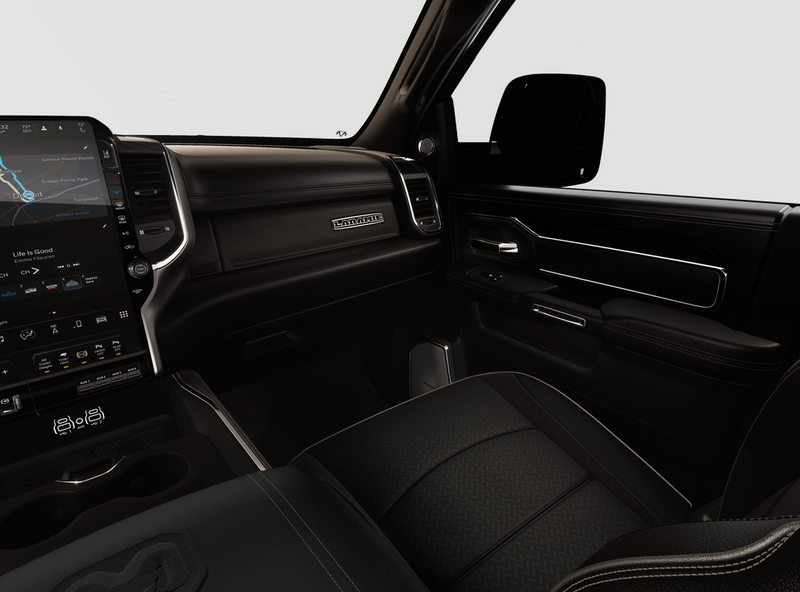 MOONROOF/SUNROOF, BACK UP CAMERA, ParkSense Front and Rear Park?Assist with Stop, Surround View Camera System, Trailer Reverse Guidance, Trailer Tire Pressure Monitoring System, 5th Wheel/Gooseneck Towing Prep Group, Automatic Leveling Rear Air Suspension, Anti-Spin Differential Rear Axle, Dual Wireless Charging Pad, Traffic Sign Recognition, Drowsy Driver Detection, Active Lane Management System, Center Stop Lamp with Cargo View Camera, Rain Sensitive Windshield Wipers, Remote Tailgate Release, Front and Rear Rubber Floor Mats by Mopar, Dual 730 AMP Maintenance Free Batteries, 31 Gallon Fuel Tank, Trailer Brake Controller, Selectable Tire Fill Alert, Tire Pressure Information System, Blind Spot with Tag Trailer & Cross Path Detection, Full Speed Forward Collision Warning Plus, Pedestrian/Cyclist Emergency Braking, Selective Catalytic Reduction, Diesel Exhaust Brake, 3500 Laramie Mega Cab, 4D Mega Cab, 6.7L I6, 8-Speed Automatic, 4WD, Diamond Black Crystal Pearlcoat, Black w/Leather Trim 40/20/40 Bench Seat or Leather Trimmed Bucket Seats, #1 Seat Foam Cushion, 115V Auxiliary Rear Power Outlet, 14.4'' Touchscreen Display, 17 Speaker harman/kardon Premium Sound, 2 Way Rear Headrest Seat, 3.42 Axle Ratio, 4 Way Front Headrests, 4G LTE Wi-Fi Hot Spot, 5th Wheel/Gooseneck Towing Prep Group, Active Lane Management System, Adaptive Steering System, Alexa Built-In, Apple CarPlay, Auto Adjust In Reverse Exterior Mirrors, Auto Dim Exterior Mirror, Auto High Beam Headlamp Control, Auto Level Rear Air Suspension, Auto Power-Folding Mirrors, Auto-Dimming Exterior Passenger Mirror, Bucket Seats, Center Stop Lamp w/Cargo View Camera, Connected Travel & Traffic Services, Connectivity - US/Canada, Delay-off headlights, Disassociated Touchscreen Display, Drowsy Driver Detection, Dual Wireless Charging Pad, Dual-Pane Panoramic Sunroof, Emergency Vehicle Alert System (EVAS), Exterior Mirrors Courtesy Lamps, Exterior Mirrors w/Heating Element, Exterior Mirrors w/Memory, Exterior Mirrors w/Supplemental Signals, Foam Bottle Insert (Door Trim Panel), For Details Visit DriveUconnect.com, For More Info, Call 800-643-2112, Forward & Reverse Utility Lights, Front fog lights, Front Seat Back Map Pockets, Full Length Upgraded Floor Console, Global Telematics Box Module (TBM), Google Android Auto, GPS Antenna Input, GPS Navigation, HD Radio, Heated Front Seats, Heated Steering Wheel, High Back Seats, Integrated Voice Command w/Bluetooth, Laramie Level 2 Plus Equipment Group, Leather Trimmed Bucket Seats, LED Bed Lighting, Max Tow Package, Mirror Running Lights, MOPAR Deployable Bed Step, MOPAR Spray In Bedliner, My FlexCare Service Diesel, Navigation System, Off-Road Information Pages, Overhead console, Power 2-Way Driver Lumbar Adjust, Power 2-Way Passenger Lumbar Adjust, Power Adjust 8-Way Driver Seat, Power Adjust 8-Way Front Passenger Seat, Power Adjust Mirrors, Power Adjustable Pedals w/Memory, Power Deployable Running Boards, Power Heated Folding Telescopic Mirrors w/Memory, Power Telescoping Mirrors, Power-Adjustable Convex Aux Mirrors, Quick Order Package 24H Laramie, Radio: Uconnect 5 Nav w/14.4'' Display, Radio/Driver Seat/Mirrors/Pedals Memory, Rain Sensitive Windshield Wipers, Rear 60/40 Folding Seat, Remote Tailgate Release, Selectable Tire Fill Alert, SiriusXM Radio Service, SiriusXM w/360L, Towing Technology Group, Traffic Sign Recognition, Trailer Reverse Guidance, Trailer Tire Pressure Monitoring System, Trailer Tow Pages, Ventilated Front Seats, Wheels: 17'' x 6.0'' Polished Aluminum. 2026 Ram 3500 Laramie Mega Cab 6.7L I6 4WD Diamond Black Crystal Pearlcoat