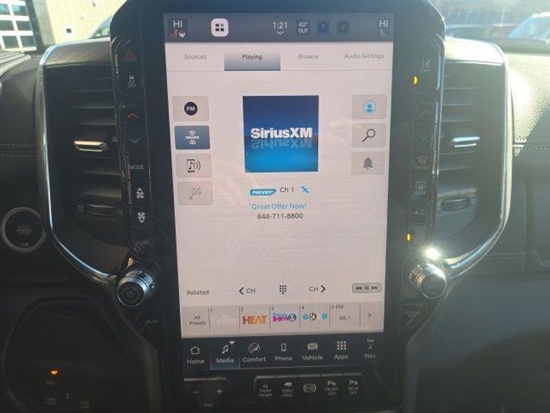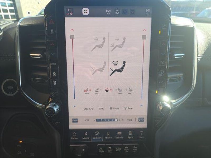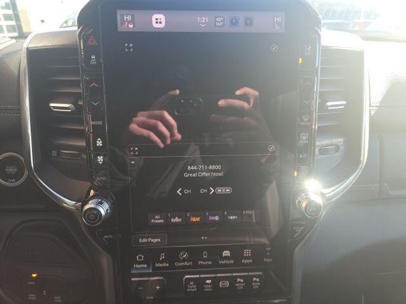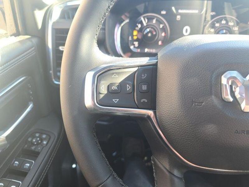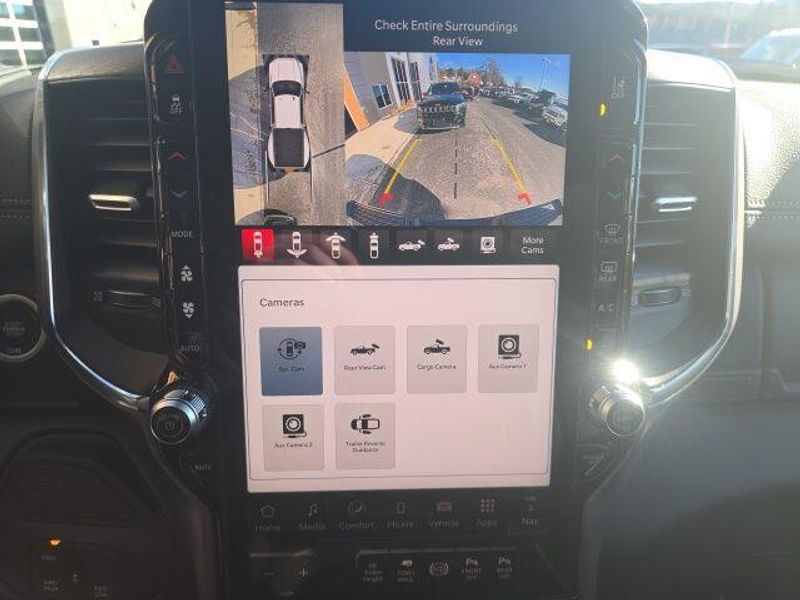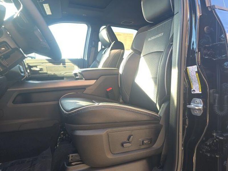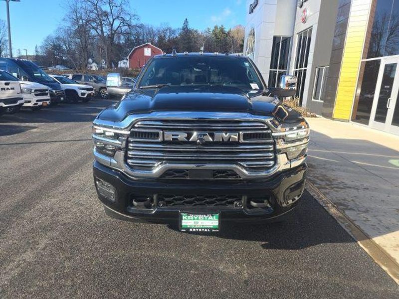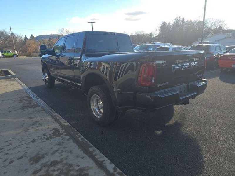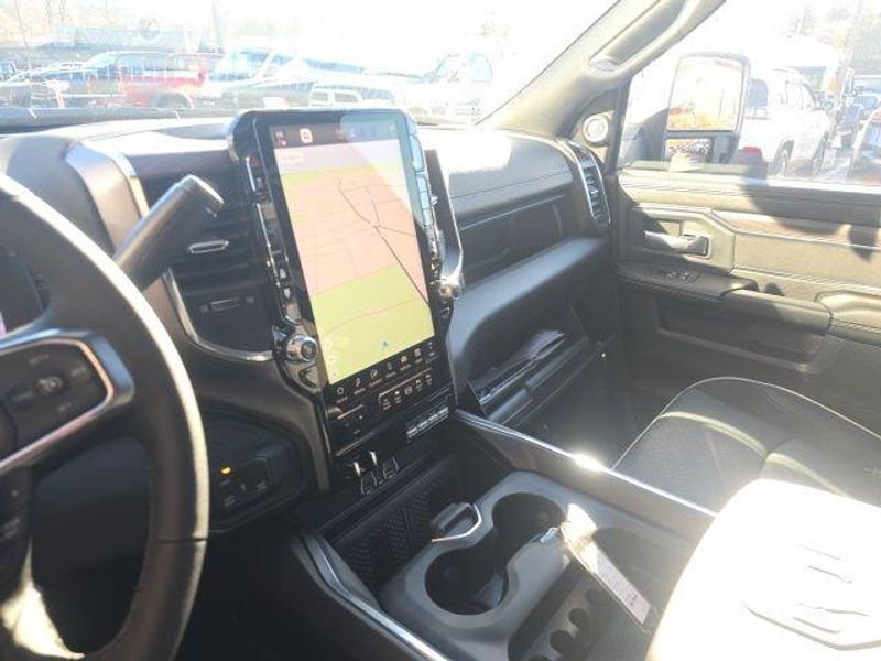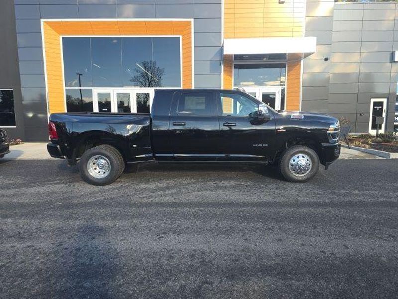 MOONROOF/SUNROOF, BACK UP CAMERA, ParkSense Front and Rear Park?Assist with Stop, Surround View Camera System, Trailer Reverse Guidance, Trailer Tire Pressure Monitoring System, 5th Wheel/Gooseneck Towing Prep Group, Automatic Leveling Rear Air Suspension, Anti-Spin Differential Rear Axle, Dual Wireless Charging Pad, Traffic Sign Recognition, Drowsy Driver Detection, Active Lane Management System, Center Stop Lamp with Cargo View Camera, Rain Sensitive Windshield Wipers, Remote Tailgate Release, Front and Rear Rubber Floor Mats by Mopar, Dual 730 AMP Maintenance Free Batteries, 31 Gallon Fuel Tank, Trailer Brake Controller, Selectable Tire Fill Alert, Tire Pressure Information System, Blind Spot with Tag Trailer & Cross Path Detection, Full Speed Forward Collision Warning Plus, Pedestrian/Cyclist Emergency Braking, Selective Catalytic Reduction, Diesel Exhaust Brake, 3500 Laramie Mega Cab, 4D Mega Cab, 6.7L I6, 8-Speed Automatic, 4WD, Diamond Black Crystal Pearlcoat, Black w/Leather Trim 40/20/40 Bench Seat or Leather Trimmed Bucket Seats, #1 Seat Foam Cushion, 115V Auxiliary Rear Power Outlet, 14.4'' Touchscreen Display, 17 Speaker harman/kardon Premium Sound, 2 Way Rear Headrest Seat, 3.42 Axle Ratio, 4 Way Front Headrests, 4G LTE Wi-Fi Hot Spot, 5th Wheel/Gooseneck Towing Prep Group, Active Lane Management System, Adaptive Steering System, Alexa Built-In, Apple CarPlay, Auto Adjust In Reverse Exterior Mirrors, Auto Dim Exterior Mirror, Auto High Beam Headlamp Control, Auto Level Rear Air Suspension, Auto Power-Folding Mirrors, Auto-Dimming Exterior Passenger Mirror, Bucket Seats, Center Stop Lamp w/Cargo View Camera, Connected Travel & Traffic Services, Connectivity - US/Canada, Delay-off headlights, Disassociated Touchscreen Display, Drowsy Driver Detection, Dual Wireless Charging Pad, Dual-Pane Panoramic Sunroof, Emergency Vehicle Alert System (EVAS), Exterior Mirrors Courtesy Lamps, Exterior Mirrors w/Heating Element, Exterior Mirrors w/Memory, Exterior Mirrors w/Supplemental Signals, Foam Bottle Insert (Door Trim Panel), For Details Visit DriveUconnect.com, For More Info, Call 800-643-2112, Forward & Reverse Utility Lights, Front fog lights, Front Seat Back Map Pockets, Full Length Upgraded Floor Console, Global Telematics Box Module (TBM), Google Android Auto, GPS Antenna Input, GPS Navigation, HD Radio, Heated Front Seats, Heated Steering Wheel, High Back Seats, Integrated Voice Command w/Bluetooth, Laramie Level 2 Plus Equipment Group, Leather Trimmed Bucket Seats, LED Bed Lighting, Max Tow Package, Mirror Running Lights, MOPAR Deployable Bed Step, MOPAR Spray In Bedliner, My FlexCare Service Diesel, Navigation System, Off-Road Information Pages, Overhead console, Power 2-Way Driver Lumbar Adjust, Power 2-Way Passenger Lumbar Adjust, Power Adjust 8-Way Driver Seat, Power Adjust 8-Way Front Passenger Seat, Power Adjust Mirrors, Power Adjustable Pedals w/Memory, Power Deployable Running Boards, Power Heated Folding Telescopic Mirrors w/Memory, Power Telescoping Mirrors, Power-Adjustable Convex Aux Mirrors, Quick Order Package 24H Laramie, Radio: Uconnect 5 Nav w/14.4'' Display, Radio/Driver Seat/Mirrors/Pedals Memory, Rain Sensitive Windshield Wipers, Rear 60/40 Folding Seat, Remote Tailgate Release, Selectable Tire Fill Alert, SiriusXM Radio Service, SiriusXM w/360L, Towing Technology Group, Traffic Sign Recognition, Trailer Reverse Guidance, Trailer Tire Pressure Monitoring System, Trailer Tow Pages, Ventilated Front Seats, Wheels: 17'' x 6.0'' Polished Aluminum. 2026 Ram 3500 Laramie Mega Cab 6.7L I6 4WD Diamond Black Crystal Pearlcoat