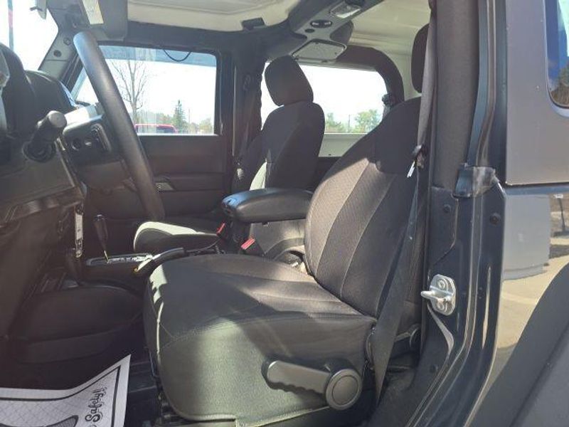 Meticulously maintained and with low mileage, this Wrangler Sport offers exceptional value and the uncompromising capability you expect from the Jeep brand. The interior features comfortable cloth seats, steering wheel-mounted audio controls, and a versatile layout that adapts to your active lifestyle.