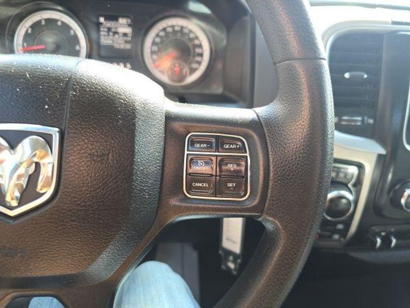 Under the hood, the legendary HEMI 5.7L V8 engine delivers an exhilarating driving experience, with its impressive power and efficiency. Paired with the smooth-shifting 8-speed automatic transmission, this Ram 1500 Classic Warlock provides the perfect balance of strength and control.