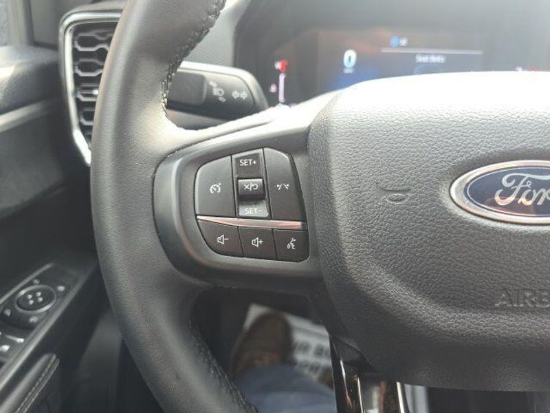 Powered by the robust EcoBoost 2.3L I4 GTDi DOHC Turbocharged VCT engine, the Ranger XLT delivers impressive performance and efficiency, with an EPA-estimated 20 city/24 highway mpg. The 10-speed automatic transmission and 4WD system ensure seamless power delivery and exceptional off-road capability, thanks to the FX4 Off-Road Package.