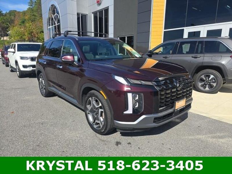ONE OWNER, CLEAN CARFAX-NO ACCIDENTS, RECENT TRADE IN, SERVICE RECORDS AVAILABLE, NAVIGATION GPS NAV, LOCAL TRADE, MOONROOF/SUNROOF, BLUETOOTH/HANDS FREE CELL PHONE, REMAINDER OF FACTORY WARRANTY, LOW MILES, VERY CLEAN/NEEDS NOTHING, FACTORY REMOTE STARTER, BACK UP CAMERA, Harman Kardon Premium Audio, Power 3rd Row Seats, Heated Front, 2nd and 3rd Row Seats, Ventilated Front and 2nd Row Seats, 20'' Alloy Wheels, MULTIMEDIA & CONNECTIVITY, 12.3'' Navigation System w/AM/FM/HD Radio, Wireless Phone Charger, REAR POWER LIFTGATE, Palisade Limited, 4D Sport Utility, V6, 8-Speed Automatic with SHIFTRONIC, AWD, Sierra Burgundy, Beige Leather. 2024 Hyundai Palisade Limited AWD 8-Speed Automatic with SHIFTRONIC Sierra Burgundy Recent Arrival! Odometer is 9311 miles below market average! V6