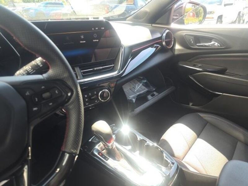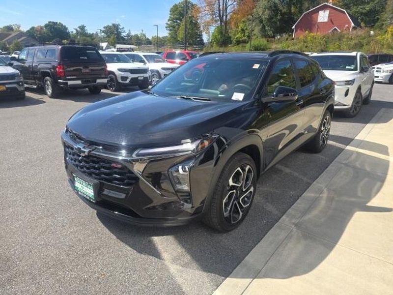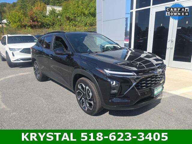 ONE OWNER, CLEAN CARFAX-NO ACCIDENTS, SERVICE RECORDS AVAILABLE, MOONROOF/SUNROOF, BLUETOOTH/HANDS FREE CELL PHONE, REMAINDER OF FACTORY WARRANTY, LOW MILES, FACTORY REMOTE STARTER, BACK UP CAMERA, HEATED SEATS AND HEATED STEERING WHEEL, Trax 2RS, 4D Sport Utility, 1.2L Ecotec Turbo DOHC DI w/VVT, 6-Speed Automatic, FWD, Mosaic Black Metallic, Jet Black With Red Accents. 2025 Chevrolet Trax 2RS FWD 6-Speed Automatic Mosaic Black Metallic Recent Arrival! 1.2L Ecotec Turbo DOHC DI w/VVT