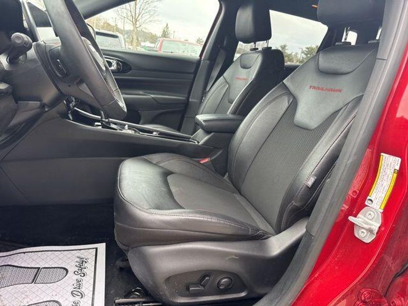The Trailhawk Convenience Group and Sun & Sound Group elevate this Compass to new heights, offering a premium Alpine audio system, heated front seats and steering wheel, power-adjustable driver's seat, and a panoramic sunroof ? perfect for taking in the great outdoors.