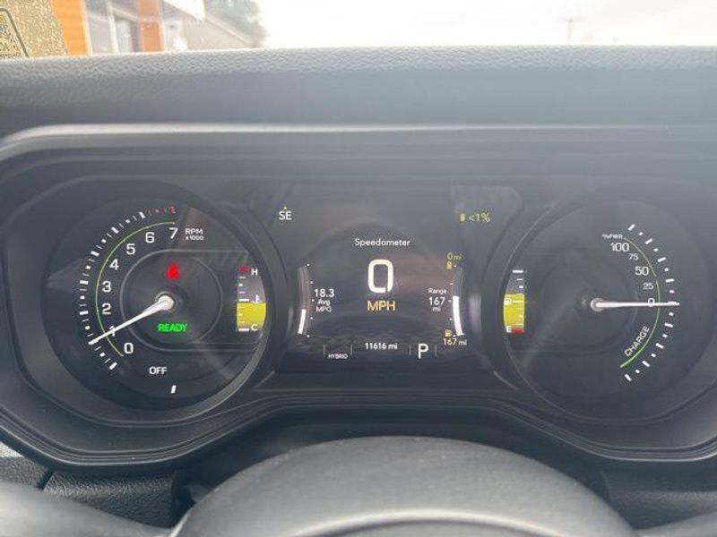 Powered by a 2.0L I4 DOHC DI Turbo PHEV engine and an 8-Speed Automatic transmission, this Wrangler Willys 4xe delivers exceptional performance and efficiency. With its 4WD capabilities, you'll conquer any terrain with ease, whether you're tackling the rugged backcountry or navigating the city streets.