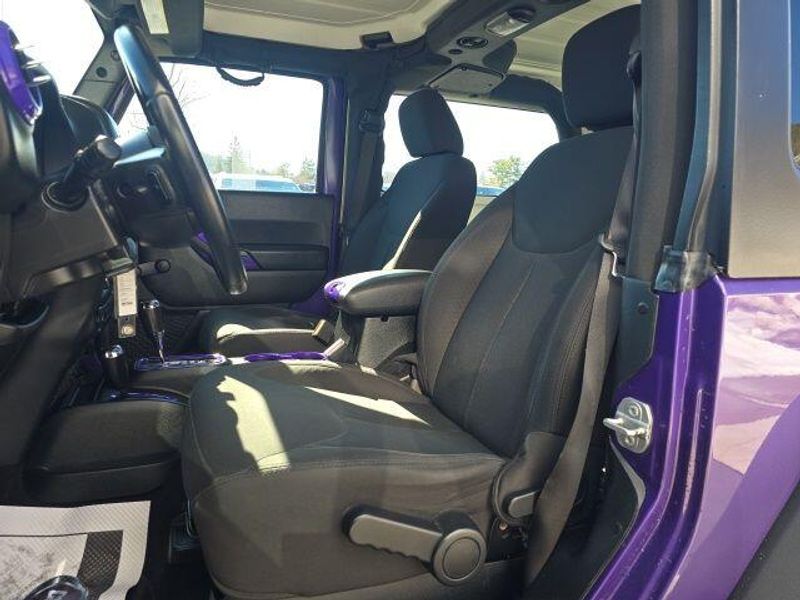 Looking for an off-road adventure that's both stylish and capable? Look no further than this 2018 Jeep Wrangler JK Sport. With its rugged 4WD system, powerful 3.6L V6 engine, and striking purple exterior, this Wrangler is ready to take you on the journey of a lifetime.