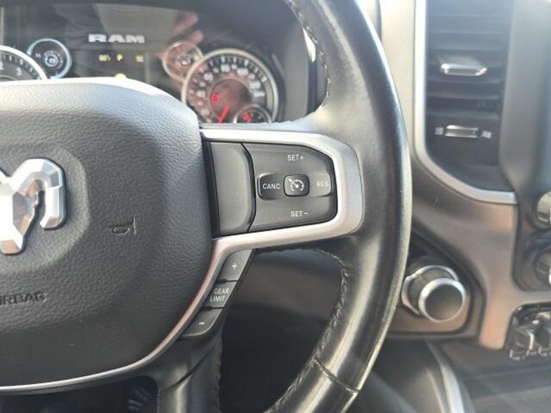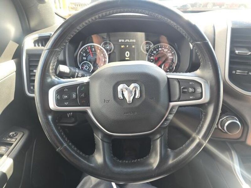 CLEAN CARFAX-NO ACCIDENTS, RECENT TRADE IN, SERVICE RECORDS AVAILABLE, LOCAL TRADE, BLUETOOTH/HANDS FREE CELL PHONE, FACTORY REMOTE STARTER, BACK UP CAMERA, MOPAR SIDE STEPS, REAR BED LINER, TRAILER BRAKE CONTROLLER, 4 NEW TIRES, 1500 Big Horn/Lone Star, 4D Quad Cab, HEMI 5.7L V8 Multi Displacement VVT, 8-Speed Automatic, 4WD, Delmonico Red Pearlcoat, Black Cloth. 2020 Ram 1500 Big Horn/Lone Star 4WD 8-Speed Automatic Delmonico Red Pearlcoat HEMI 5.7L V8 Multi Displacement VVT