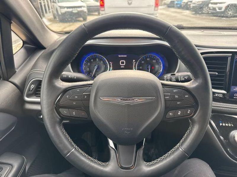 Packed with premium features, this Pacifica Touring AWD delivers exceptional versatility and comfort. The S Appearance Package elevates the style with Black Day Light Opening Moldings, Piano Black Interior Accents, and distinctive Anodized Ice Cave Accents. The Cold Weather Group adds the convenience of a Heated Steering Wheel and Heated Front Seats, ensuring a cozy ride even on the chilliest days.