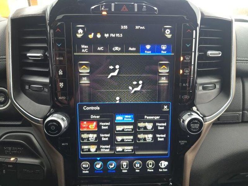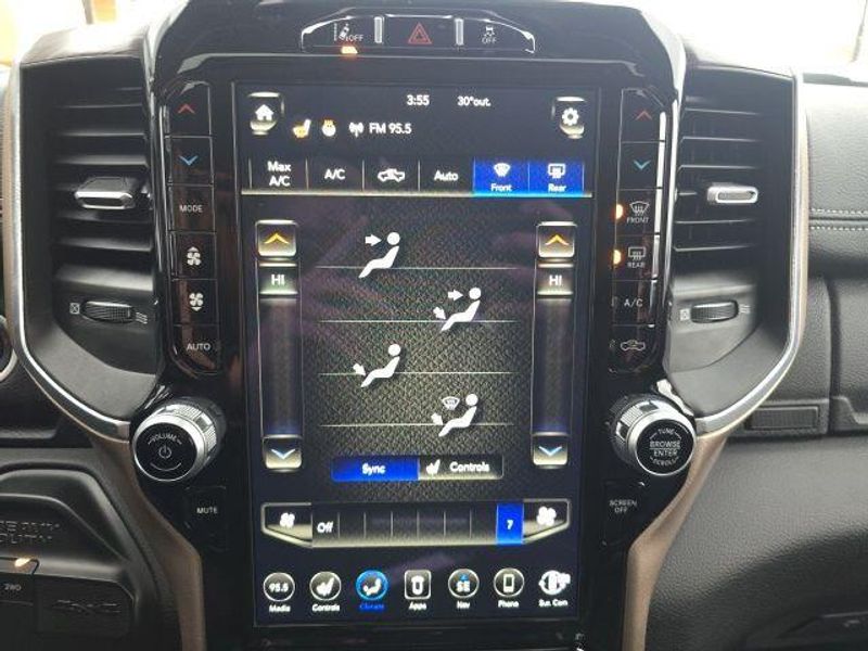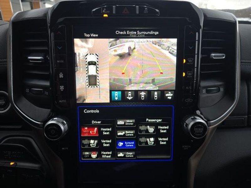 Elevate your driving experience with the Laramie Level B Equipment Group, which includes a host of premium features. Enjoy the convenience of a power adjustable driver's seat with memory, heated front and rear seats, and a premium 17-speaker harman/kardon sound system. Stay connected with the intuitive Uconnect 12-inch touchscreen display featuring built-in navigation, Apple CarPlay, and Android Auto.