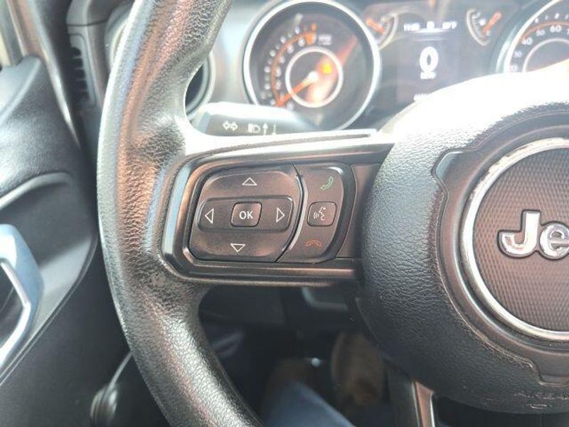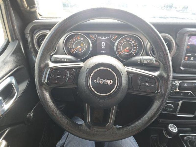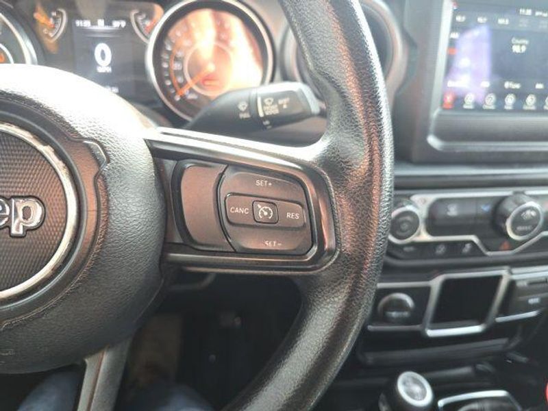 This well-equipped Wrangler Sport also features air conditioning, power steering, and steering wheel-mounted audio controls, ensuring a comfortable and enjoyable driving experience. With an impressive 17 city/25 highway MPG, you can explore the great outdoors without sacrificing efficiency.