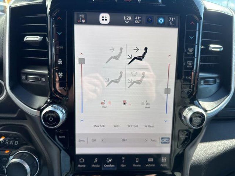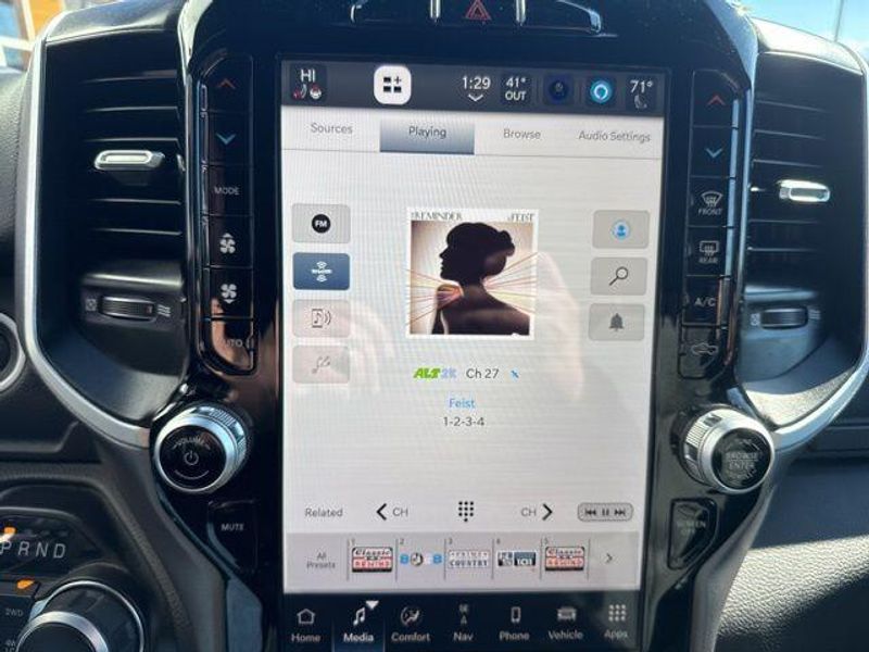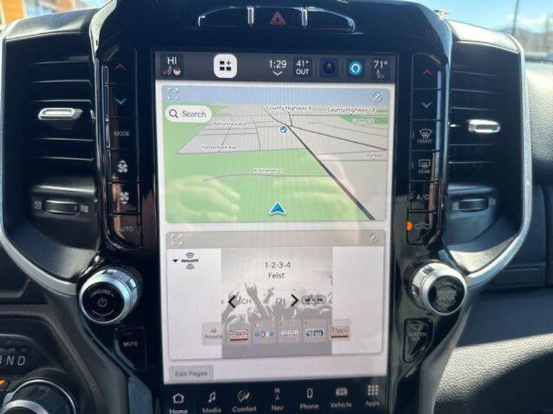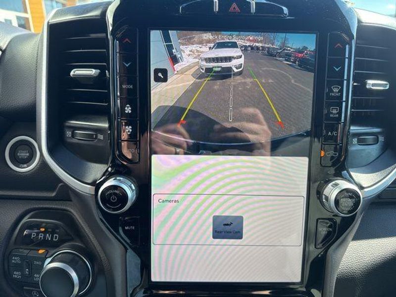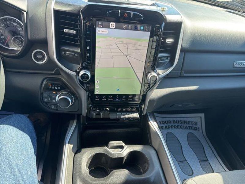 Delving deeper, this Ram 1500 is equipped with the impressive Big Horn Level B Equipment Group, which includes a wealth of premium features. Enjoy the convenience of the Uconnect 5 Nav system with a 12-inch touchscreen display, Google Android Auto, and seamless connectivity. The Premium Lighting Group enhances the truck's style with LED fog lamps, reflector headlamps, and taillamps, while the Wheel to Wheel Side Steps provide easy access.