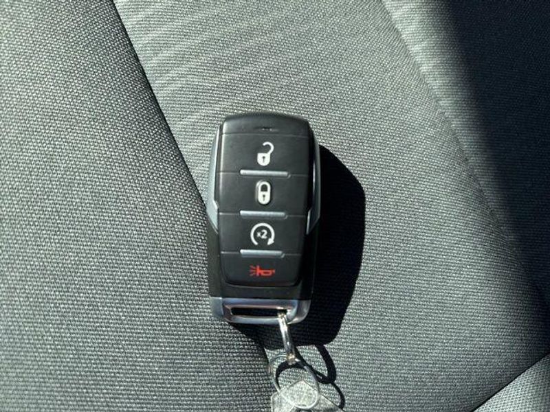 The 3.6L V6 24V VVT engine, paired with an 8-speed automatic transmission and 4WD, delivers a potent and efficient performance, with an EPA-estimated 19 MPG in the city and 24 MPG on the highway. Whether you're tackling tough terrain or navigating the daily commute, this Ram 1500 is up to the task.