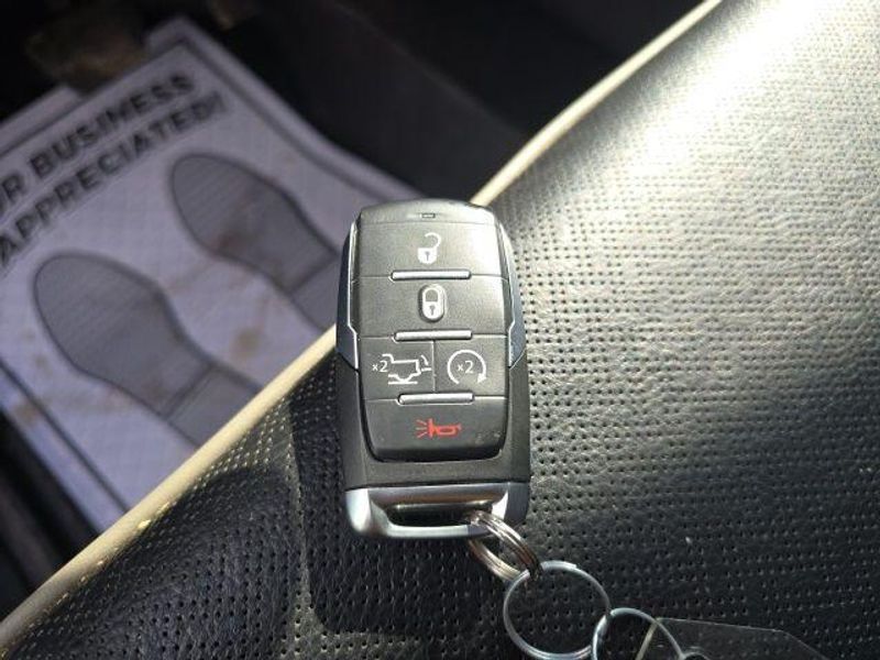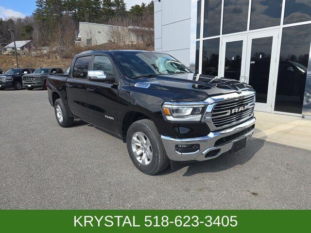 Indulge in the comfort and convenience of the Laramie's luxurious interior, featuring leather-trimmed bucket seats, a dual-pane panoramic sunroof, and a wealth of advanced technology. The Bed Utility Group adds MOPAR accessories like a spray-in bedliner and adjustable cargo tie-down hooks, ensuring you can tackle any task with ease.