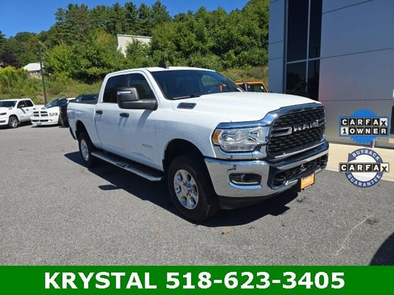ONE OWNER, CLEAN CARFAX-NO ACCIDENTS, BLUETOOTH/HANDS FREE CELL PHONE, VERY CLEAN/NEEDS NOTHING, BACK UP CAMERA, RAM STEP TUBES, SPRAY IN LINER, TRAILER BRAKE CONTROLLER, 2500 Big Horn, 4D Crew Cab, 6.4L V8, 8-Speed Automatic, 4WD, Bright White Clearcoat, Diesel Gray/Black Cloth. 2024 Ram 2500 Big Horn 4WD 8-Speed Automatic Bright White Clearcoat Odometer is 6992 miles below market average! 6.4L V8 Certified. Certified Pre-Owned Go Details: