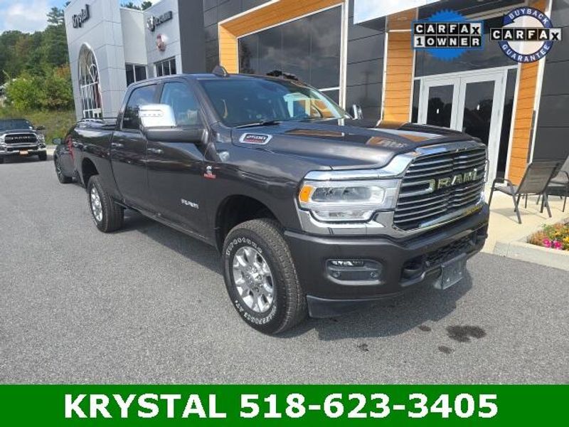 CLEAN CARFAX-NO ACCIDENTS, BLUETOOTH/HANDS FREE CELL PHONE, REMAINDER OF FACTORY WARRANTY, LOW MILES, FACTORY REMOTE STARTER, BACK UP CAMERA, Uconnect 5 Nav with 12.0Inch Touch Screen Display, heated seats and heated steering wheel, 2500 Laramie, 4D Crew Cab, Cummins 6.7L I6 Turbodiesel, 6-Speed Automatic, 4WD, Granite Crystal Metallic Clearcoat, Black Leather, Adaptive Cruise Control w/Stop, Adaptive Steering System, Auto High Beam Headlamp Control, Blind Spot & Cross Path Detection, Full Speed Forward Collision Warning Plus, Lane Keep Assist, Rain Sensitive Windshield Wipers, Safety Group. 2024 Ram 2500 Laramie 4WD 6-Speed Automatic Granite Crystal Metallic Clearcoat Recent Arrival! Odometer is 12435 miles below market average! Cummins 6.7L I6 Turbodiesel Certified. Certified Pre-Owned Go Details: