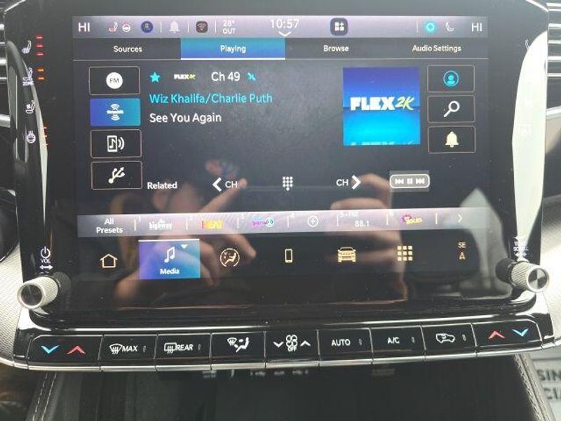 Step inside the luxurious cabin and be captivated by the premium leather-trimmed seats, heated steering wheel, and state-of-the-art Uconnect 5 infotainment system with a 12-inch display. The panoramic sunroof and advanced safety features, including lane-keep assist and rear park assist, further enhance your driving experience.